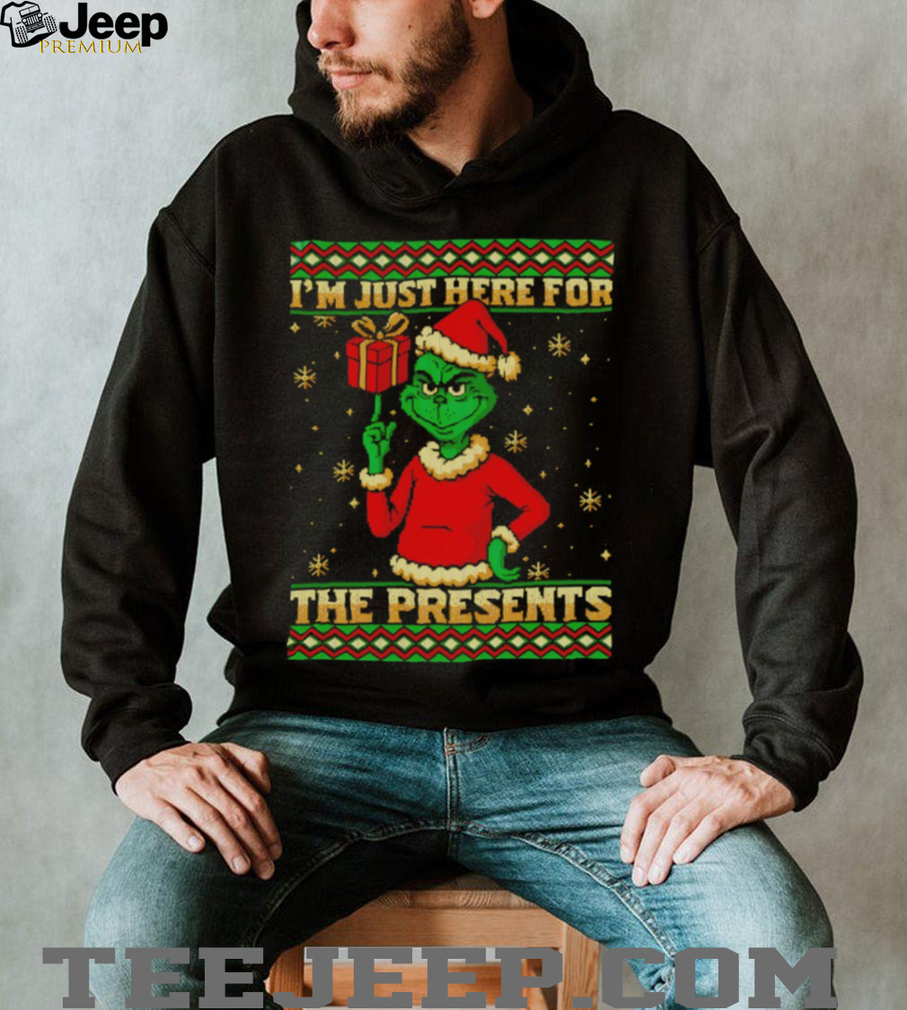 Looking for a Grinch shirt that tells it like it is? This “Grinch Santa Claus just here for the presents” shirt is perfect for those who are all about the gifts during Christmas. If you love Christmas presents this shirt is for you.