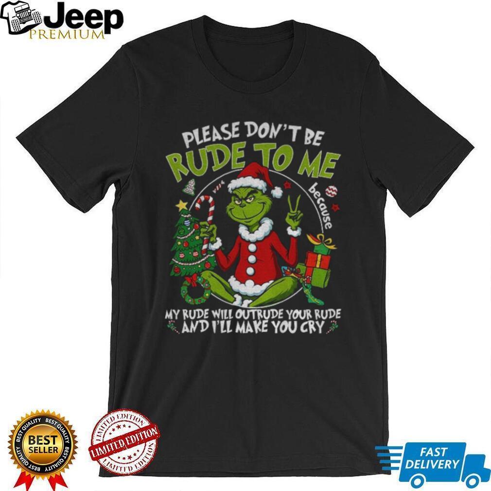 With each Grinch Santa Claus please don’t be rude to me my rude will outrude your rude and I’ll make you cry Merry Christmas shirt, you are contributing to creating a green tree.