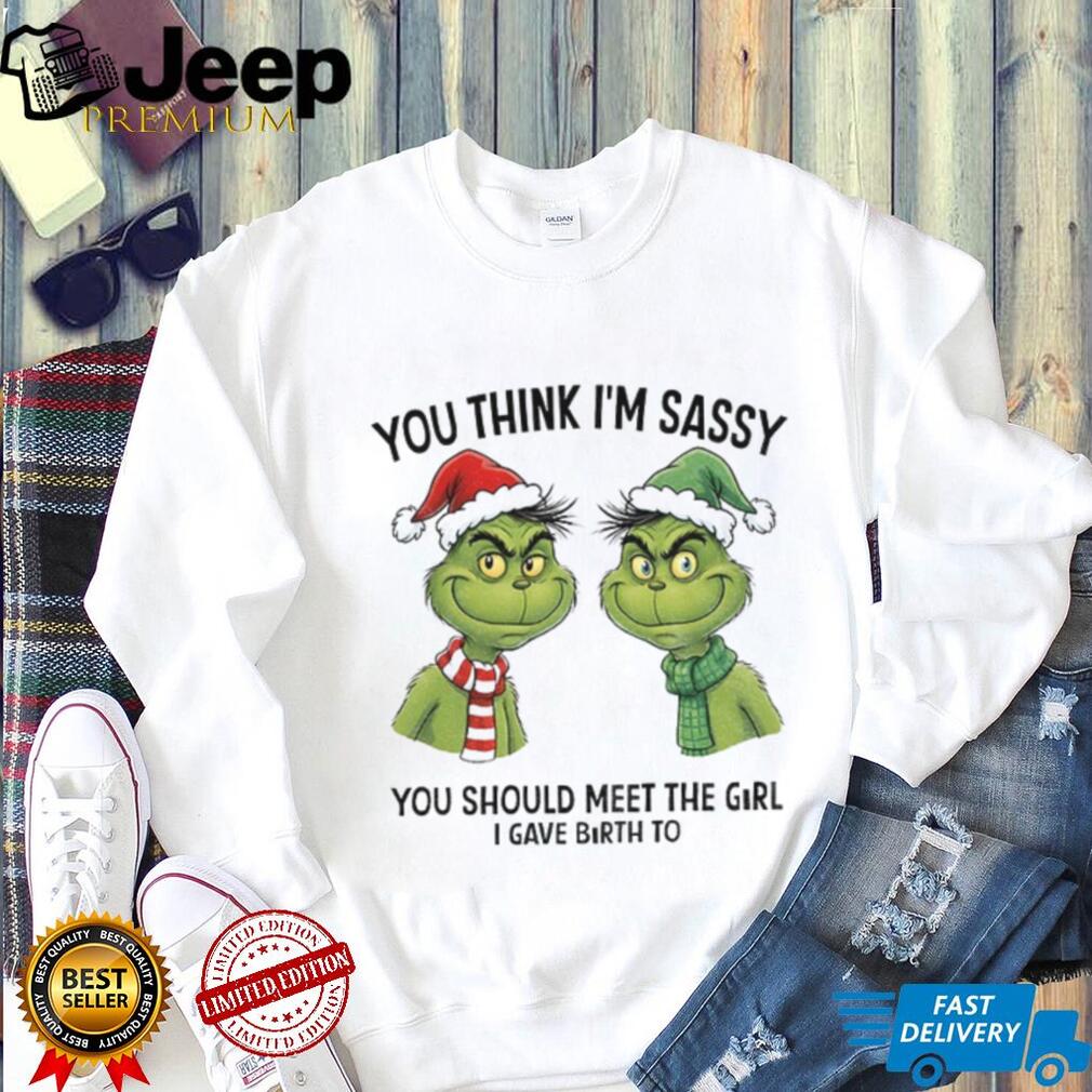With each Grinch Santa couple you think I’m sassy you should meet the girl I gave birth to Christmas shirt, you are contributing to creating a green tree.