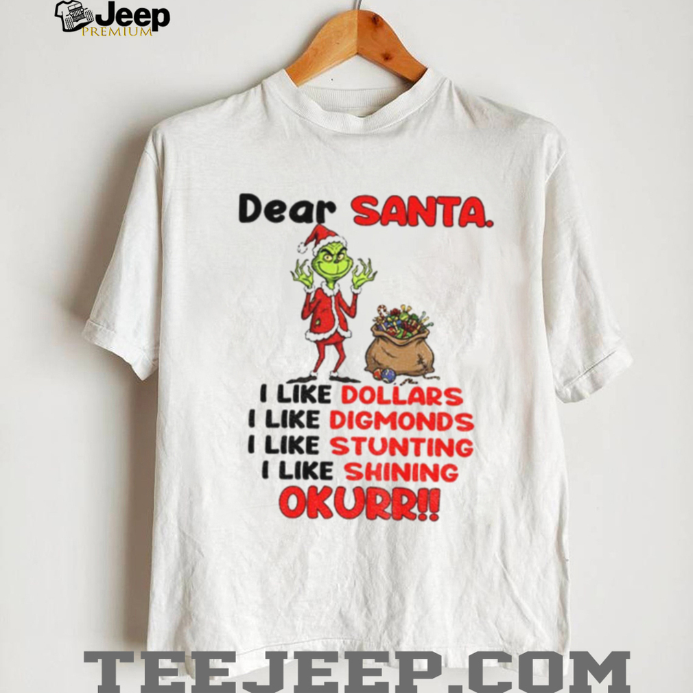 What Makes This Grinch Santa dear santa I like dollars I like diamonds I like stunting I like shining okurrr Christmas shirt Epic