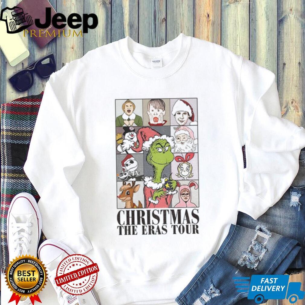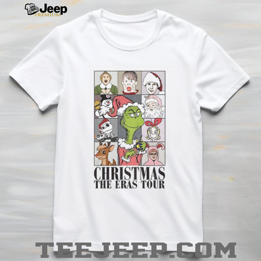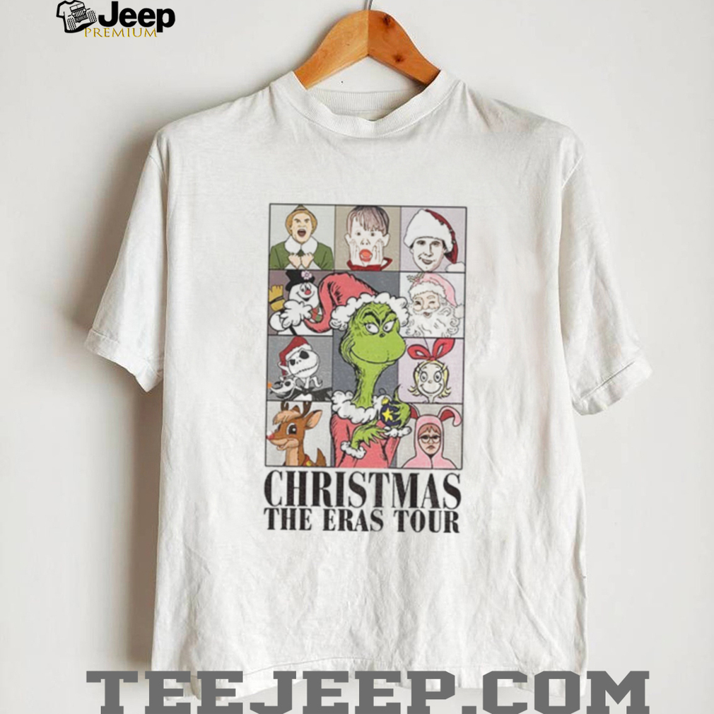 Get ready to spread some holiday cheer with this Grinch-tastic Christmas shirt! Featuring the Grinch, Santa hat, Buddy the Elf, Home Alone, all mashed up with The Eras Tour, this tee is a hilarious tribute to your favorite Christmas movies. Perfect for holiday parties, family gatherings, or just showing off your festive spirit.