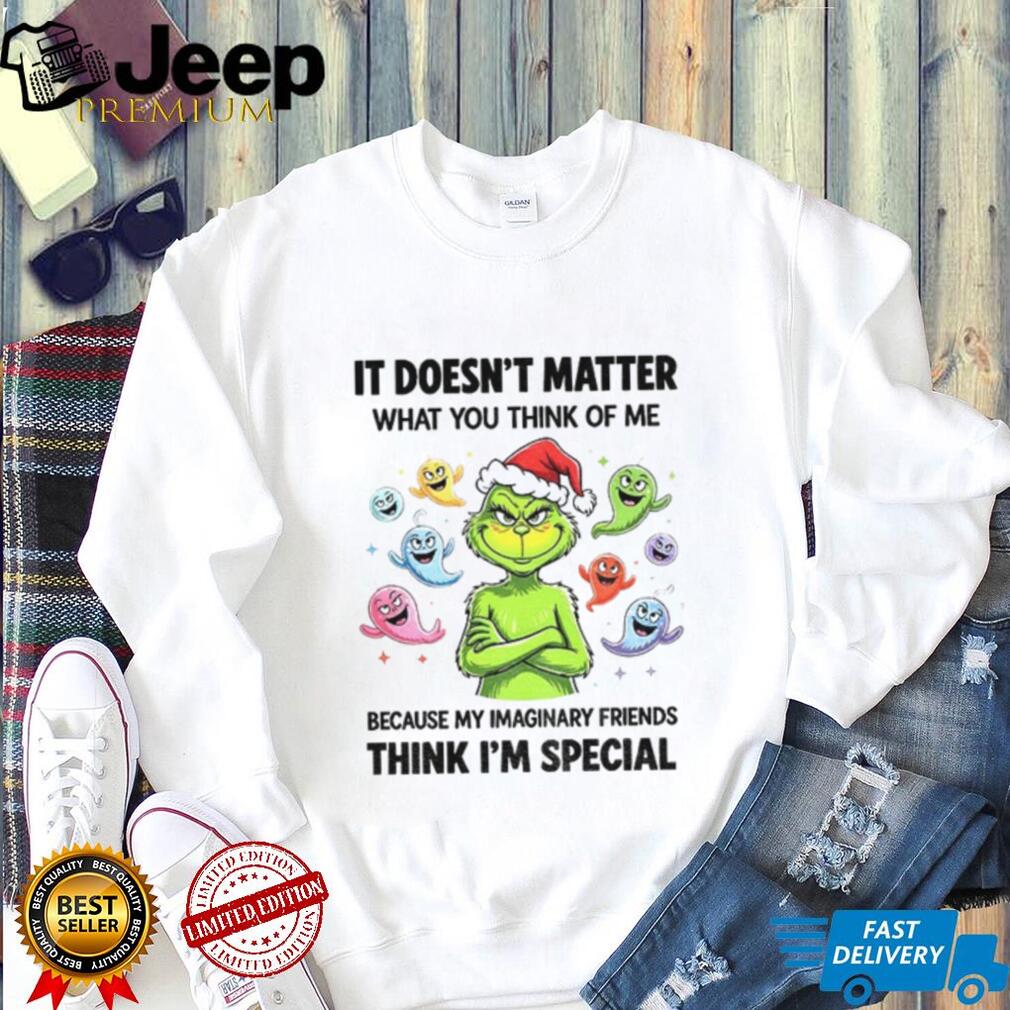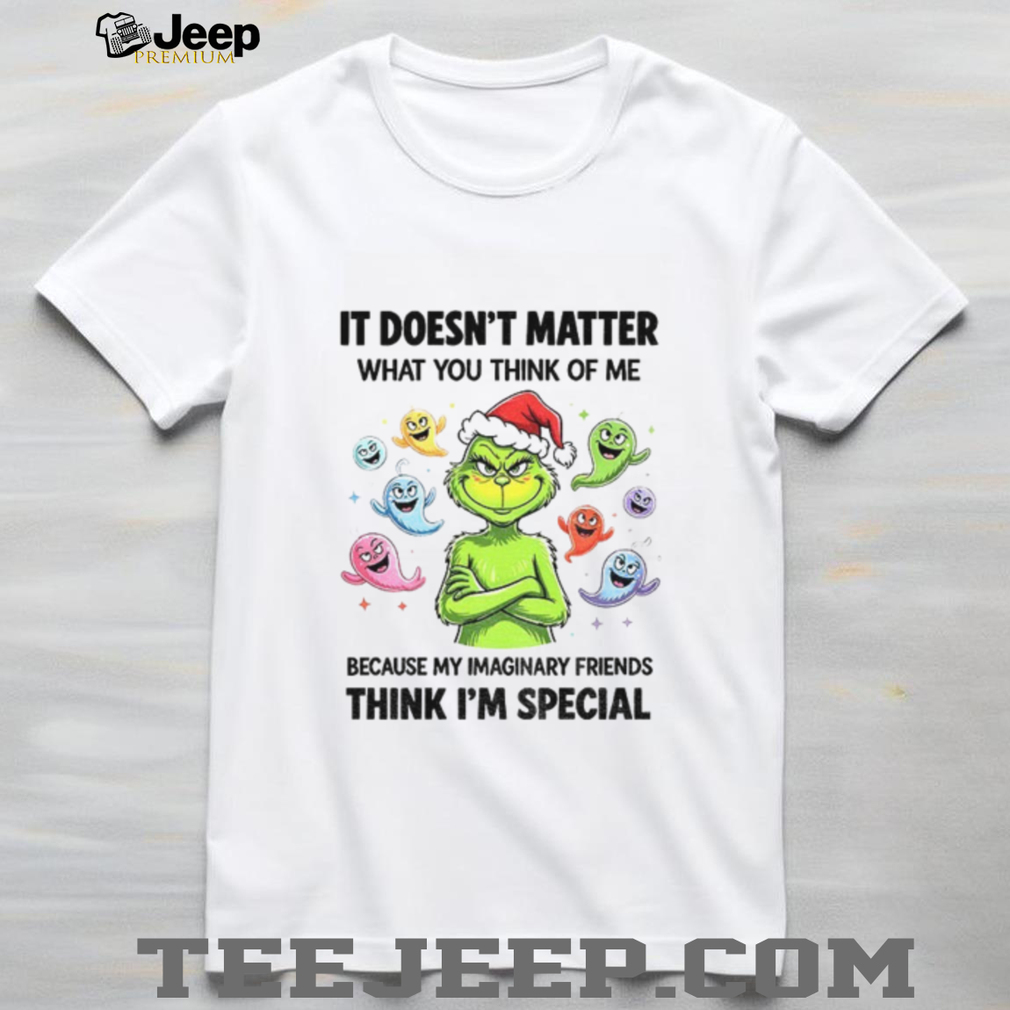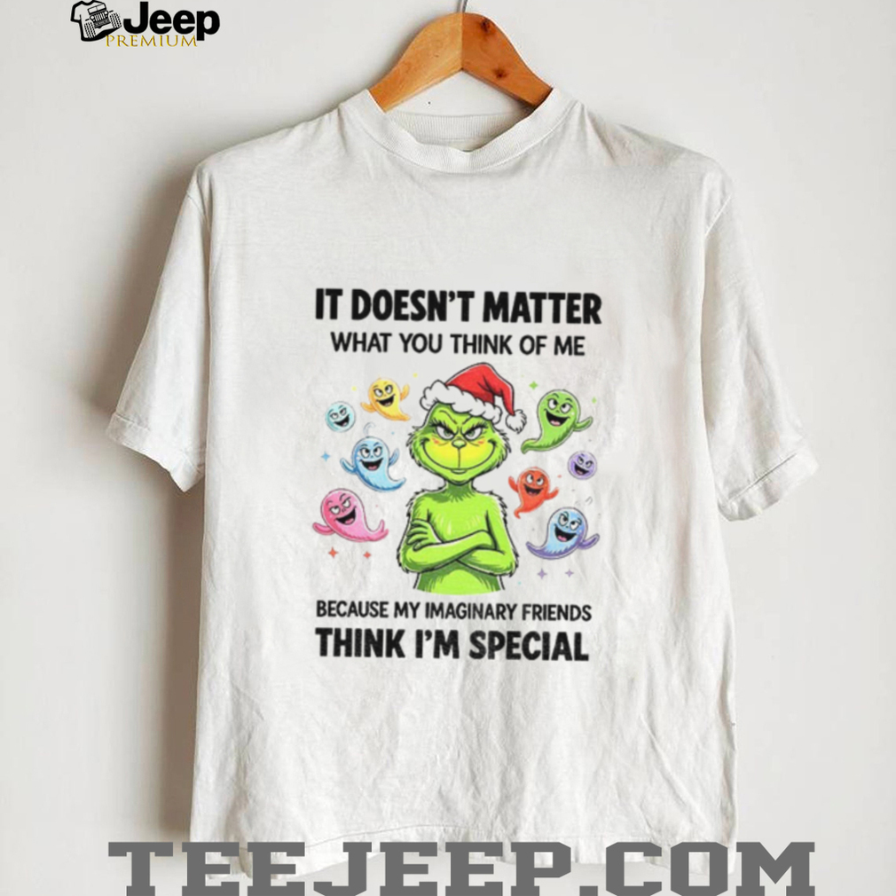 With each Grinch Santa hat ghost it doesn’t matter what you think of me because my imaginary friends think Christmas shirt, you are contributing to creating a green tree.