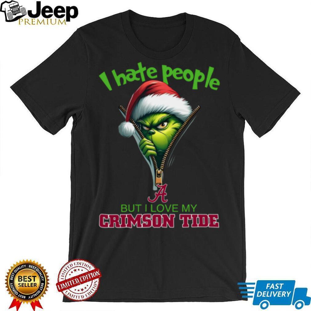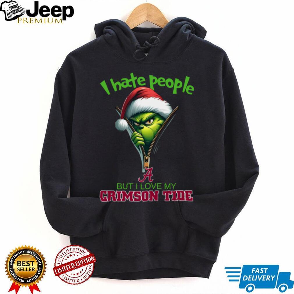 Who Rocks This Grinch Santa Hat I Hate People But I Love My Alabama Crimson Tide Christmas Logo Shirt Clothing Best: