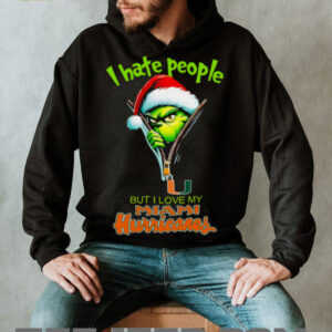 Who Rocks This Best with Grinch Santa Hat I Hate People But I Love My Miami Hurricanes Christmas Logo Shirt Clothing