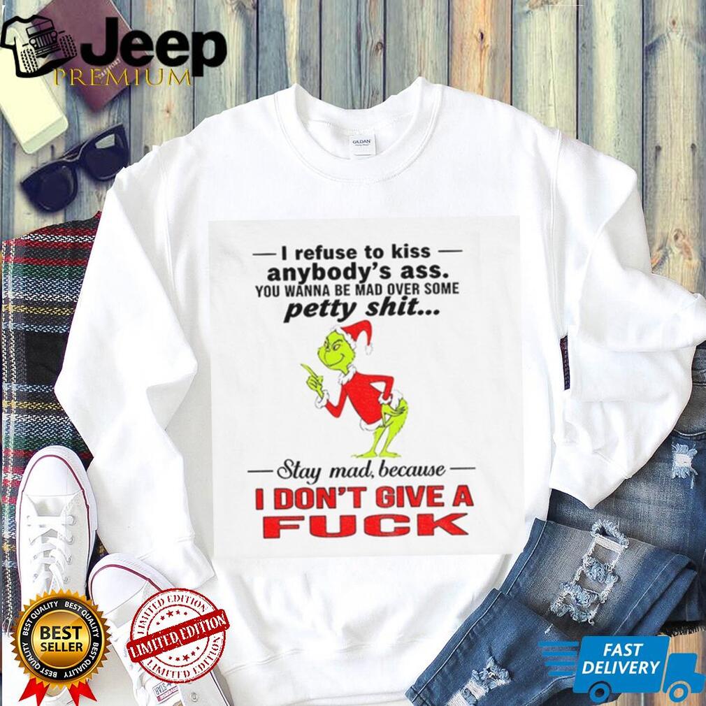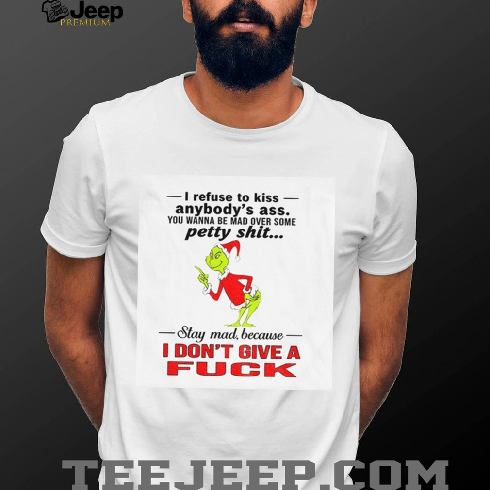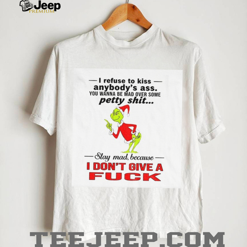 Christmas can bring out the best in people, but sometimes, you’re just not in the mood for all the forced cheer and niceties. If you’ve ever thought, “I refuse to kiss anybody’s ass, you wanna be mad over some petty shit,” this Grinch Santa hat Christmas shirt is your perfect holiday declaration. It’s for those who embrace their inner Grinch and aren’t afraid to let their true feelings shine with a hilarious, no-holds-barred attitude. This tee is guaranteed to be the most honest (and funniest) statement piece at any festive gathering.
