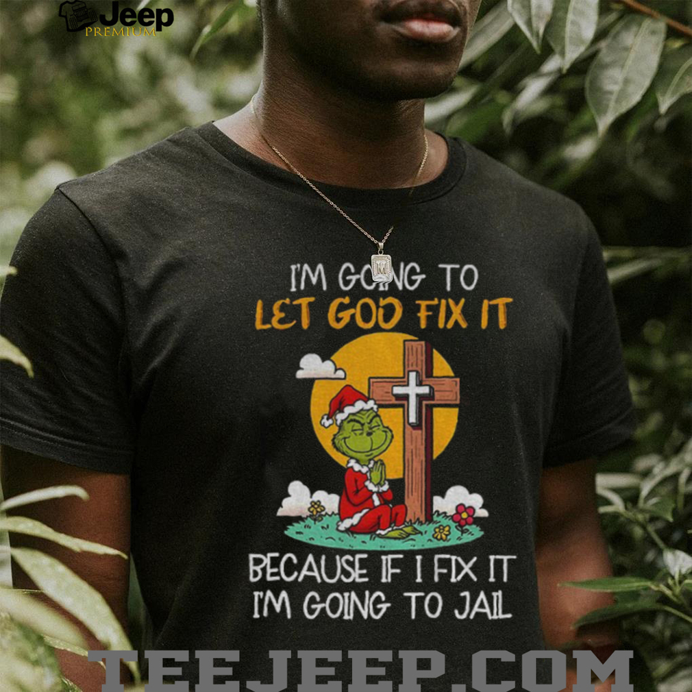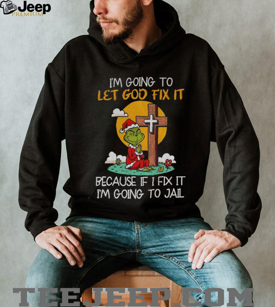 What Makes This Grinch Santa hat Im going to let god fix it because if i fix it im going to jail Christmas shirt Epic