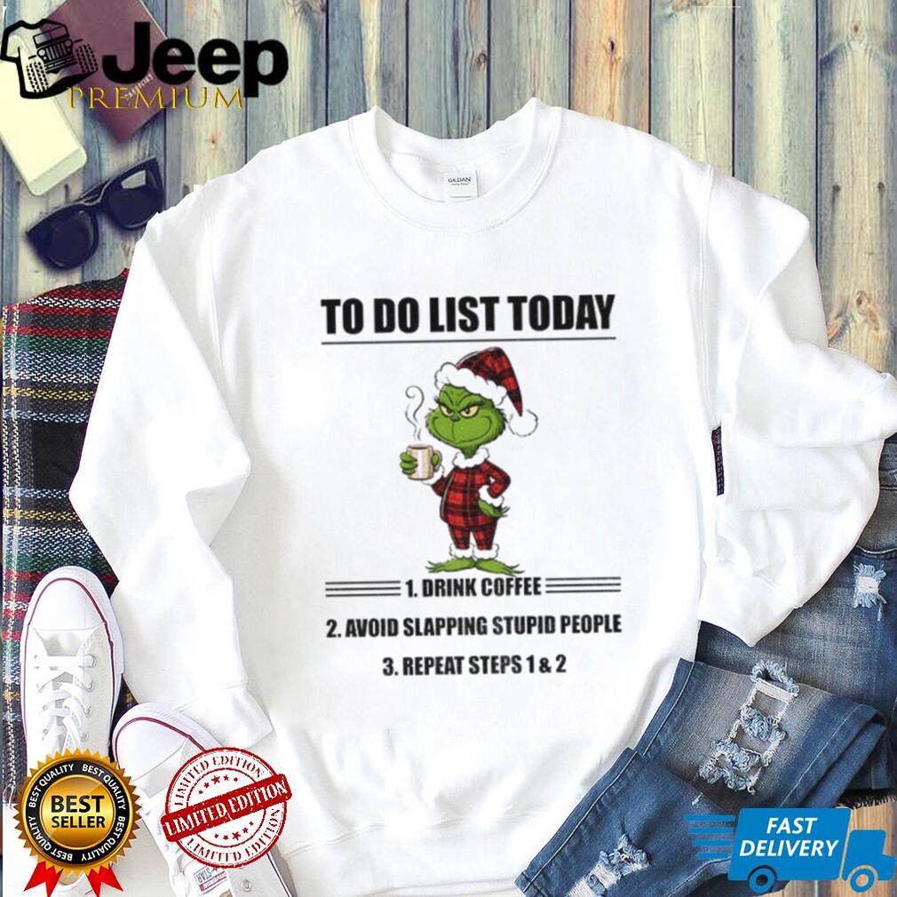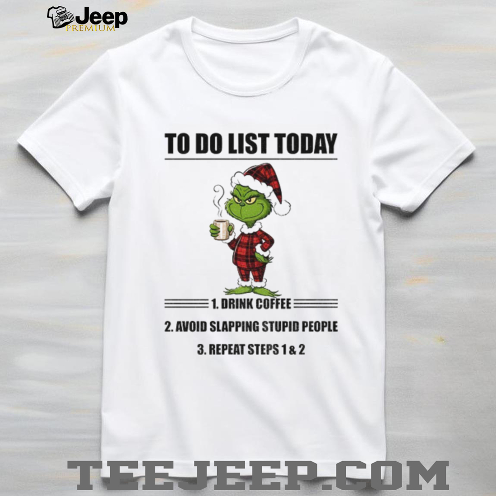 Is your to-do list filled with coffee and avoiding people? This Grinch Santa hat shirt gets it! Featuring the Grinch with a Santa hat and a hilarious to-do list, this shirt is perfect for those who love Christmas but need their coffee to deal with the holiday chaos.