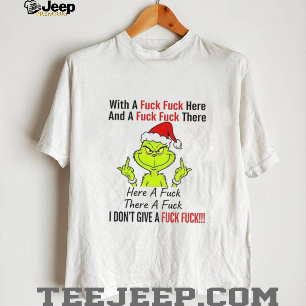 Who Rocks This Grinch Santa hat with a fuck fuck here and a fuck fuck there here a fuck there a fuck I don’t give a fuck Christmas shirt Best