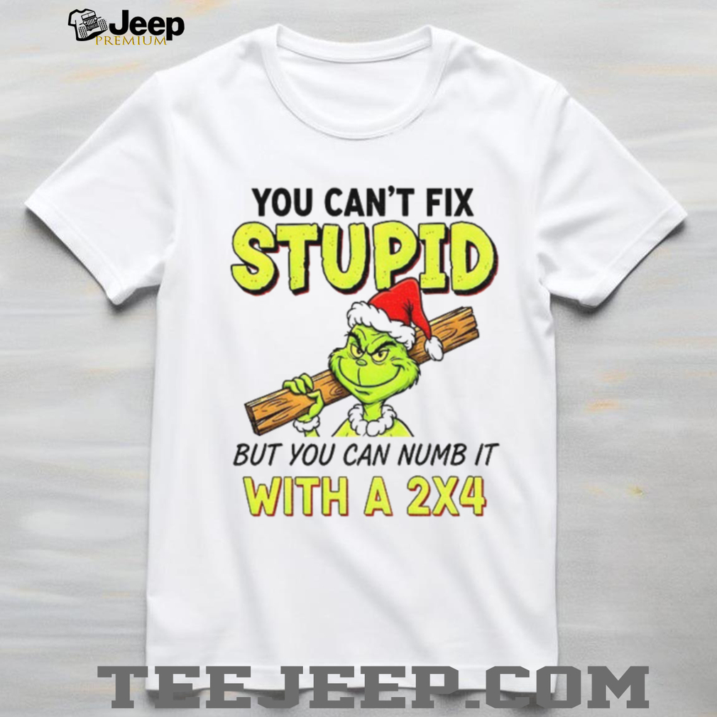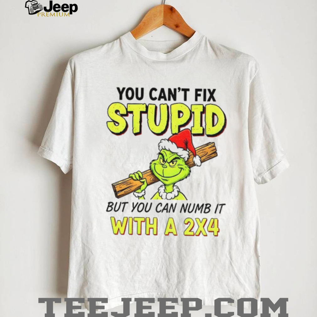 Need a Christmas shirt that speaks your mind? This “Grinch Santa hat you can’t fix stupid but you can numb it with a 2×4 Christmas shirt” is perfect for those who like their holiday cheer with a dose of reality! This tee is guaranteed to get some laughs (and maybe a few raised eyebrows).