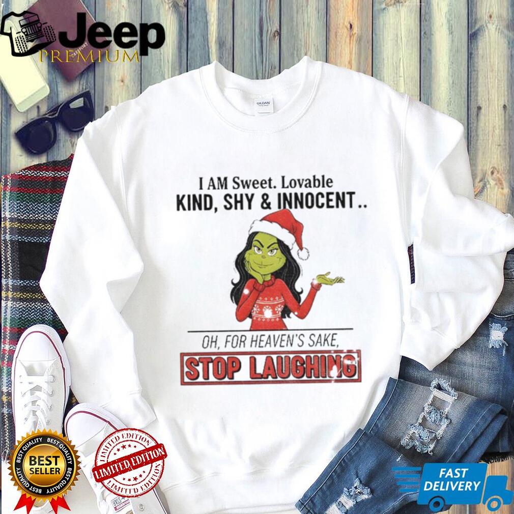 With each Grinch Santa I am sweet lovable kind shy and innocent oh for heaven’s sake Mery Christmas shirt, you are contributing to creating a green tree. To keep your new favorite **Grinch Santa Christmas shirt** looking great, machine wash cold with similar colors and tumble dry low. Avoid ironing directly on the design and do not bleach.