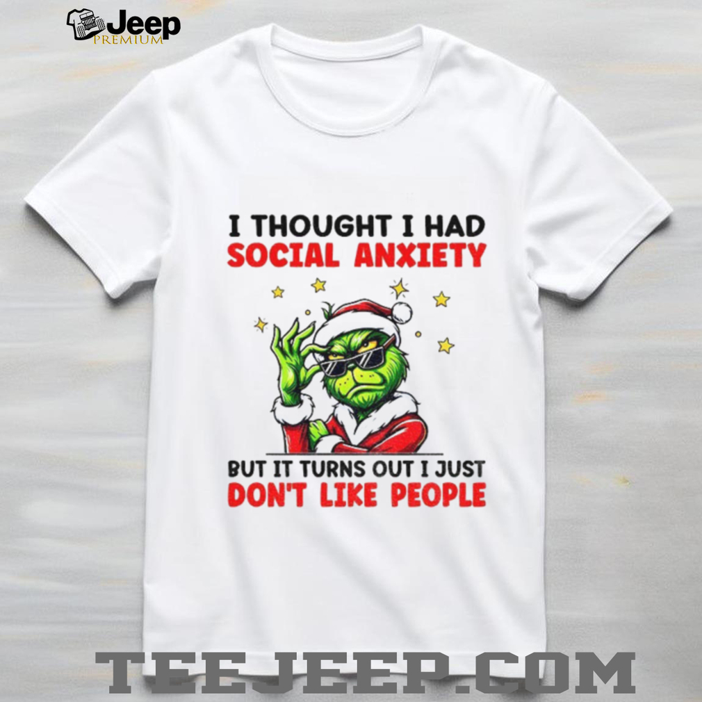 Sometimes, the holiday season brings a bit more social obligation than one can comfortably handle. If you’ve ever felt that twinge of “social anxiety” only to realize you simply prefer your own company, this Grinch Santa Christmas shirt speaks your truth. It’s a humorous and relatable way to navigate the festive hustle, letting everyone know your true feelings with a touch of Grinchy charm.nn