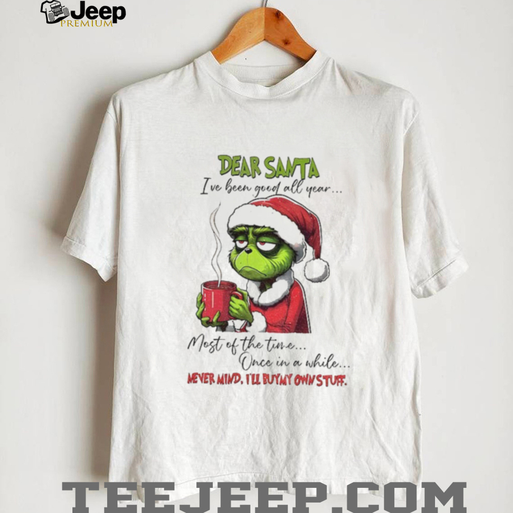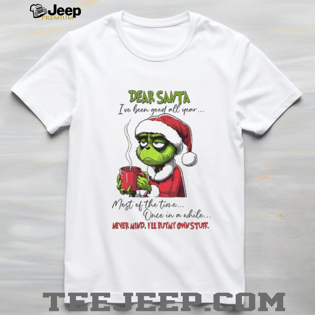 Ever felt like Santa’s naughty list just doesn’t quite capture your unique brand of holiday spirit? This “Grinch Santa I’ve been good all year most of the time once in a while never mind I’ll buy my own stuff Christmas shirt” is a hilarious and relatable anthem for those who prefer to be their own gift-giver. It’s for anyone who appreciates the freedom of self-indulgence during the festive season, with a healthy dose of Grinchy charm. This shirt is more than just holiday apparel; it’s a playful declaration of independence and a celebration of treating yourself.