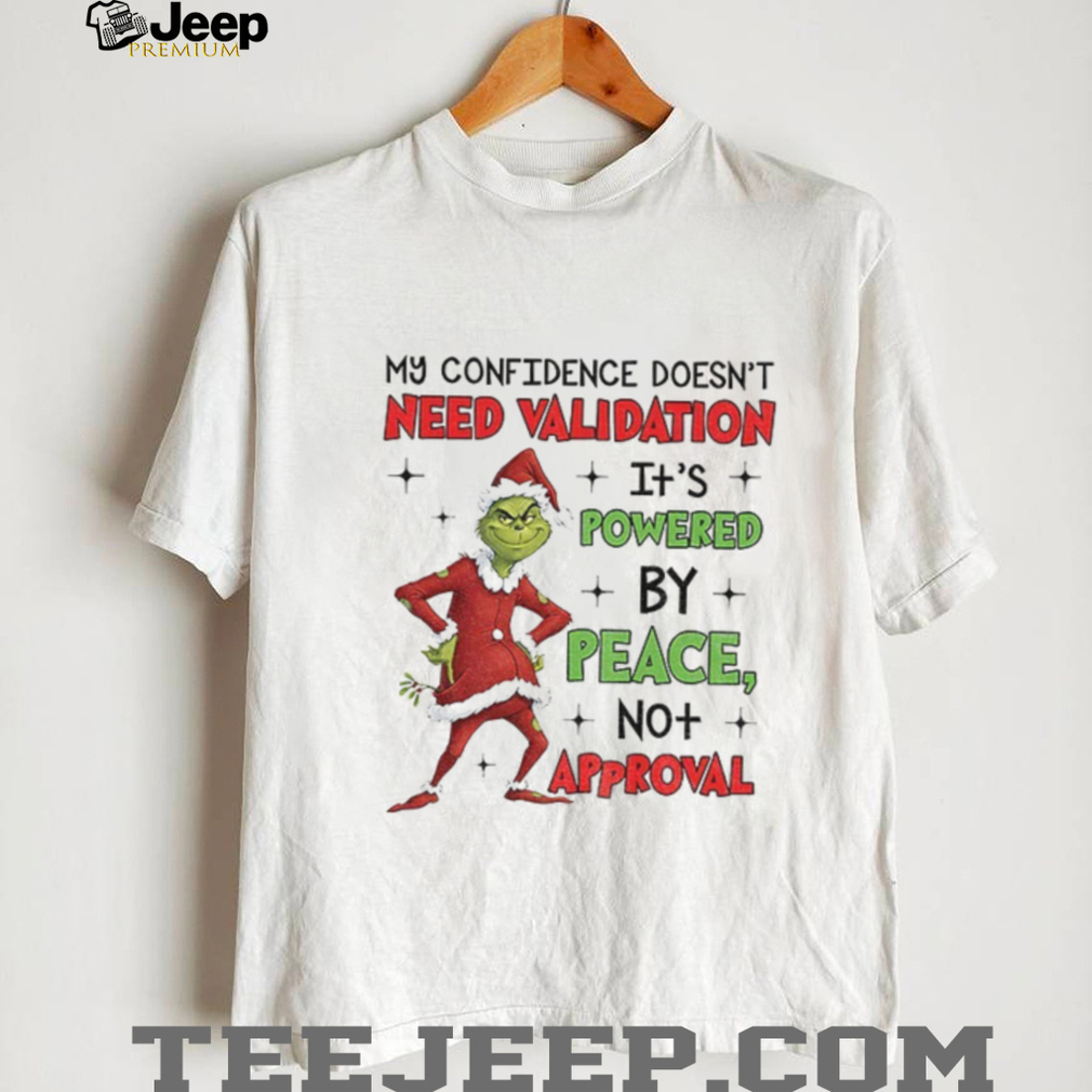 Grinch Santa is here to remind you that true confidence comes from within, powered by peace, not by external approval. This ‘Grinch Santa: My Confidence Doesn’t Need Validation, It’s Powered by Peace, No Approval Needed’ Christmas shirt is for the self-assured soul who finds strength from within. If you embrace your own power and love a holiday message with a touch of Grinchy wisdom, this tee is perfect for you.