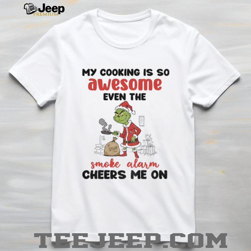 Is your cooking so good it sets off the smoke alarm? Then this Grinch Santa “my cooking is so awesome” Trending Shirt is for you! Embrace your inner chef and spread some holiday humor with this hilarious tee.