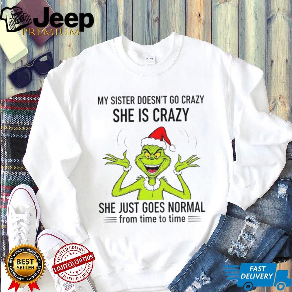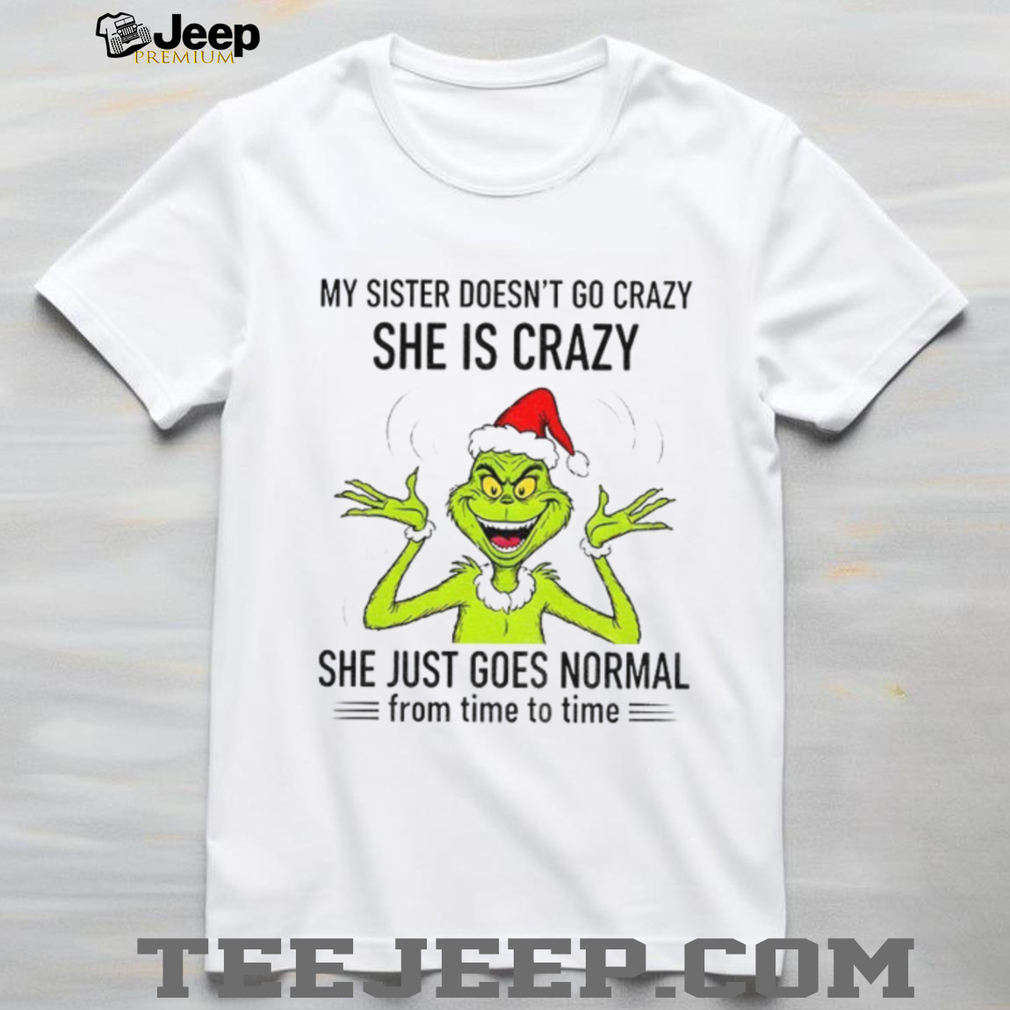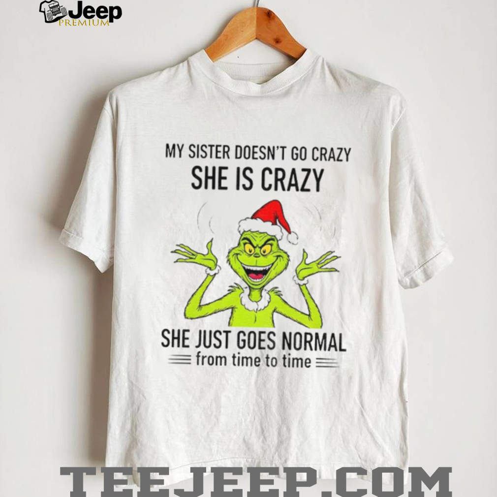 What Makes This Grinch Santa my sister doesn’t go crazy she’s crazy she just goes normal from time to time Christmas shirt Epic