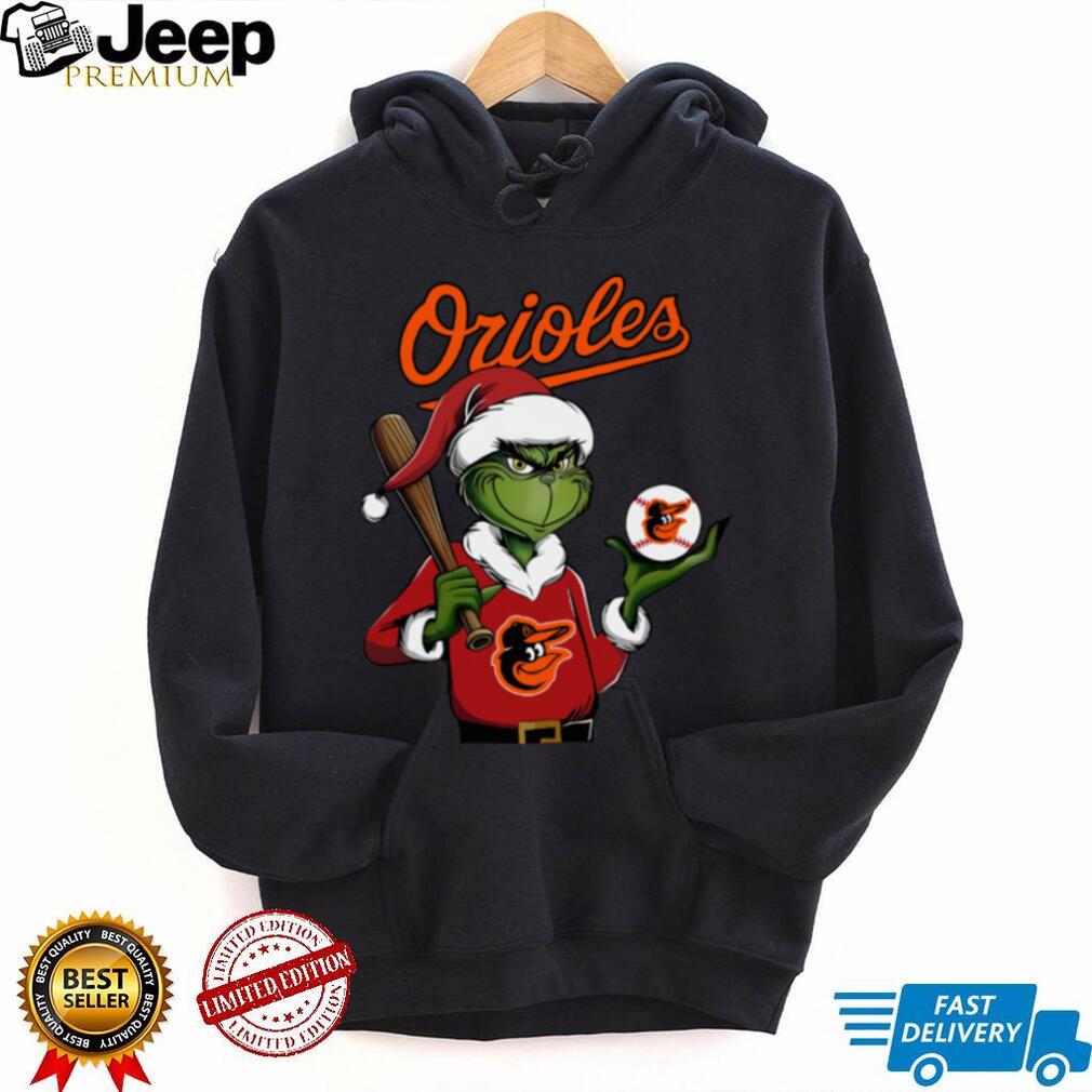 This unique t-shirt combines the mischievous Grinch and jolly Santa with the Baltimore Orioles logo in an eye-catching design. It’s a spirited way to celebrate Christmas and show your team pride. The comfortable fabric ensures a great fit and feel, whether you’re at a holiday gathering or an Orioles watch party.