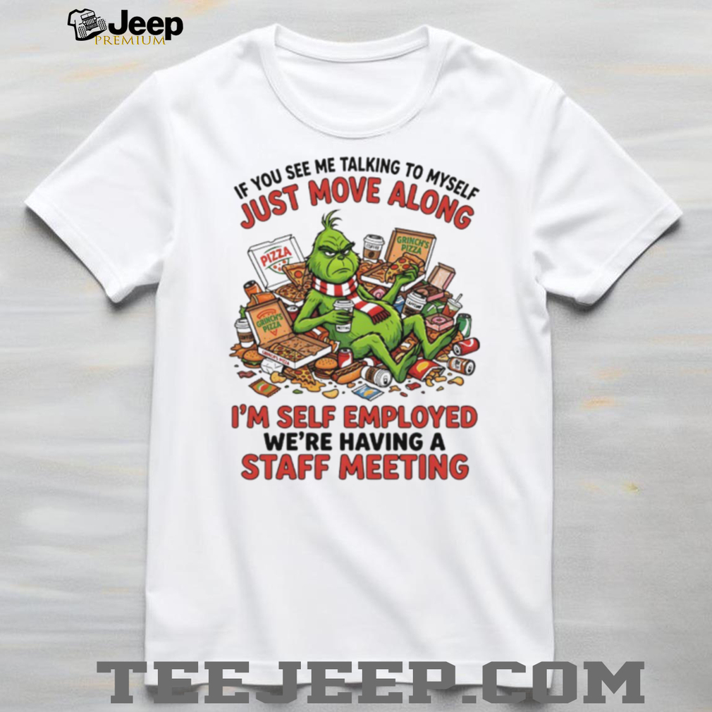 (Grinch Self Employed Staff Meeting Talking To Myself Funny Pizza T Shirt)The Ultimate Everyday Essential Elevate your wardrobe with the signature Teejeep touch. Our premium t-shirts are crafted for those who demand the perfect balance of rugged durability and cloud-like softness. Whether you’re hitting the streets or relaxing at home, this is the tee you’ll reach for every time.