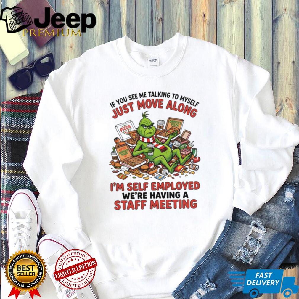 (Grinch Self Employed Staff Meeting Talking To Myself Funny Pizza T Shirt)Apr 21