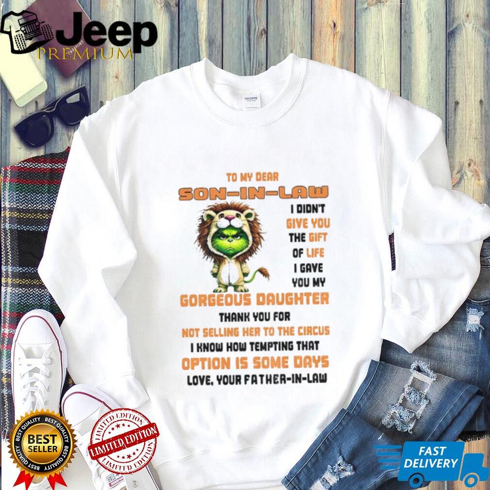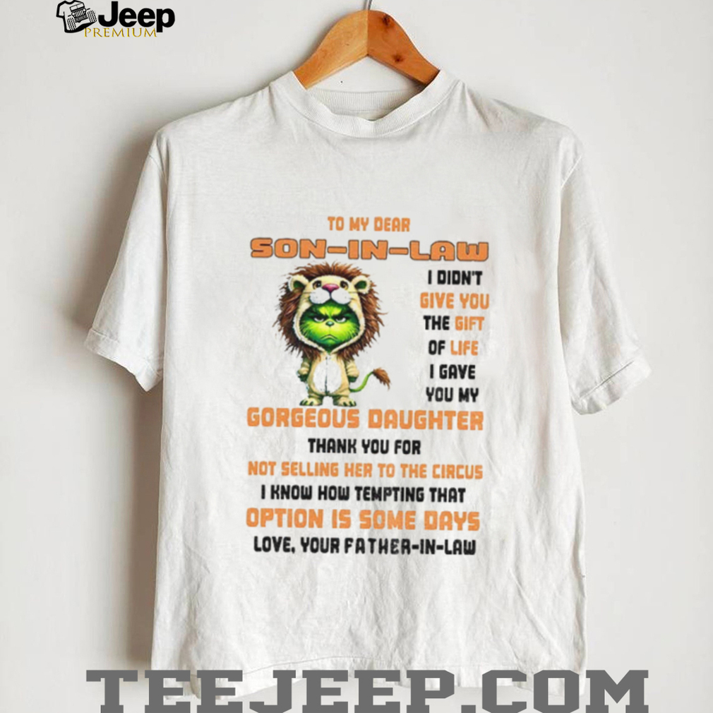 Ever found yourself looking at your son-in-law and thinking, “Well, he certainly got the best part of the deal”? This “Grinch tiger to my dear son in law I didn’t give you the gift of life I gave you my gorgeous daughter Christmas shirt” perfectly captures that sentiment with a hilarious holiday twist. It’s not just a shirt; it’s a playful declaration of love (and a little bit of sass) for the man who married your daughter. Ideal for those who enjoy a good laugh and appreciate unique Christmas gifts, this tee is sure to be a conversation starter at any festive gathering.