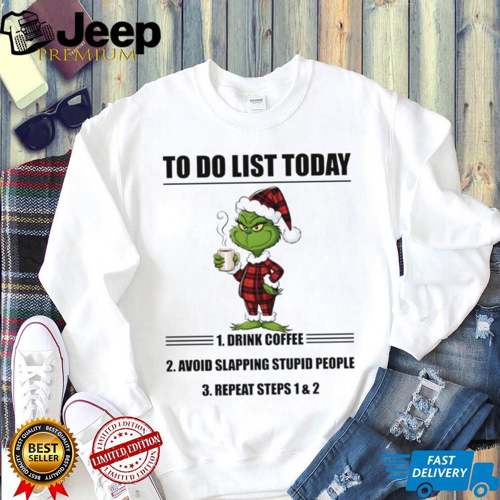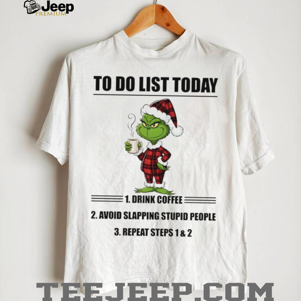 Start your day the Grinch way with this hilarious “Grinch to do list today drink coffee repeat steps 1 and 2” shirt! Perfect for coffee addicts and Grinch enthusiasts alike, this tee captures the essence of a caffeine-fueled morning routine with a touch of Whoville mischief. Get ready to spread some holiday cheer (or Grinchy grumbles) wherever you go!