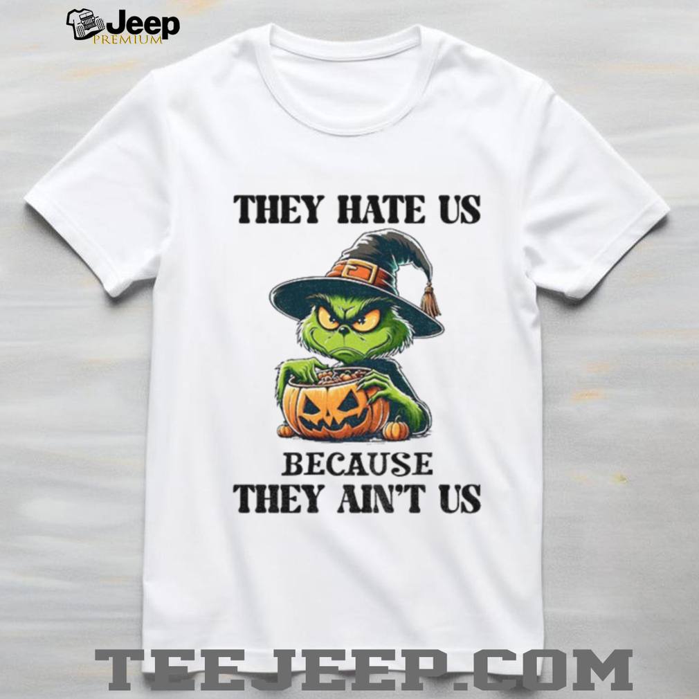 Unleash your inner Grinch this Halloween with this wickedly funny “Grinch witch they hate Us because they ain’t Us” shirt! Perfect for Halloween parties, trick-or-treating, or just showing off your mischievous side, this tee will have everyone cackling. It’s not just a shirt; it’s a spellbinding statement that combines the Grinch’s iconic grumpiness with a witchy twist. Get ready to stir up some laughs and cast a stylish shadow!