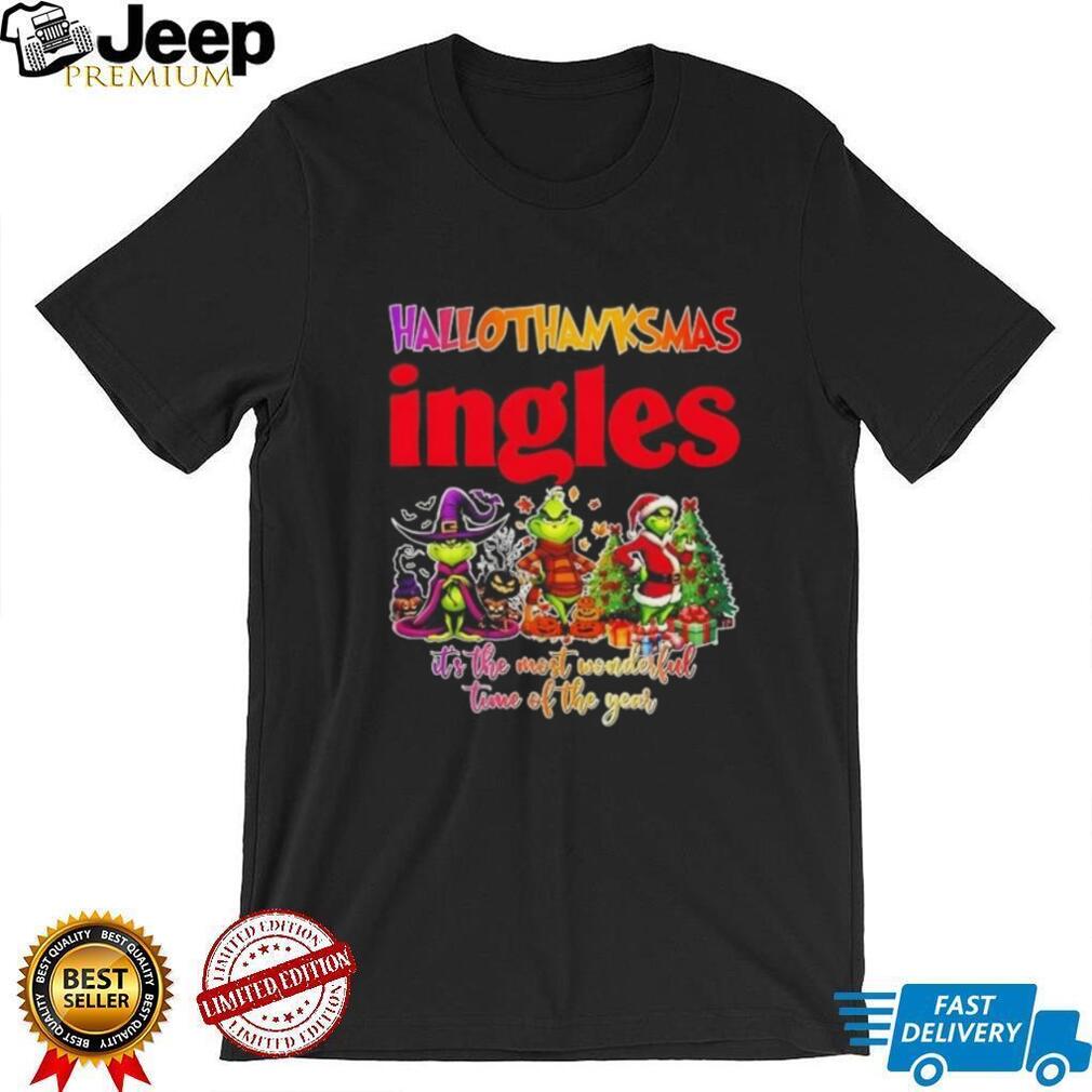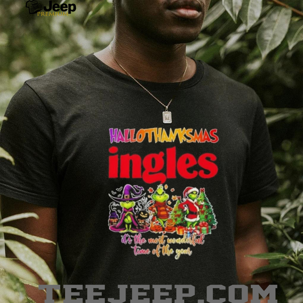 Combine your love for the Grinch, the holidays, and Ingles Market with this hilarious HalloThanksMas shirt! This unique design celebrates the most wonderful time of the year with a Grinchy twist and a nod to your favorite grocery store. Get ready to spread holiday cheer (and maybe a little mischief) wherever you go!
