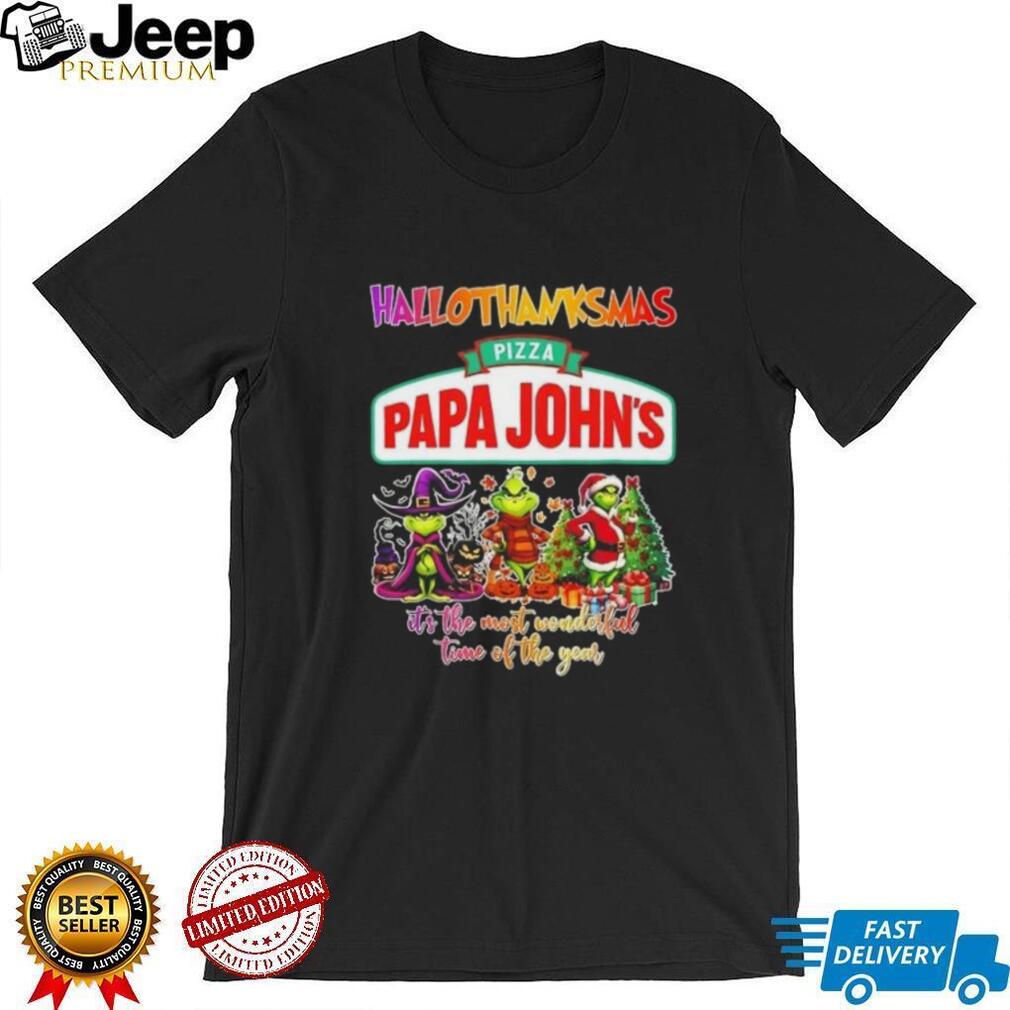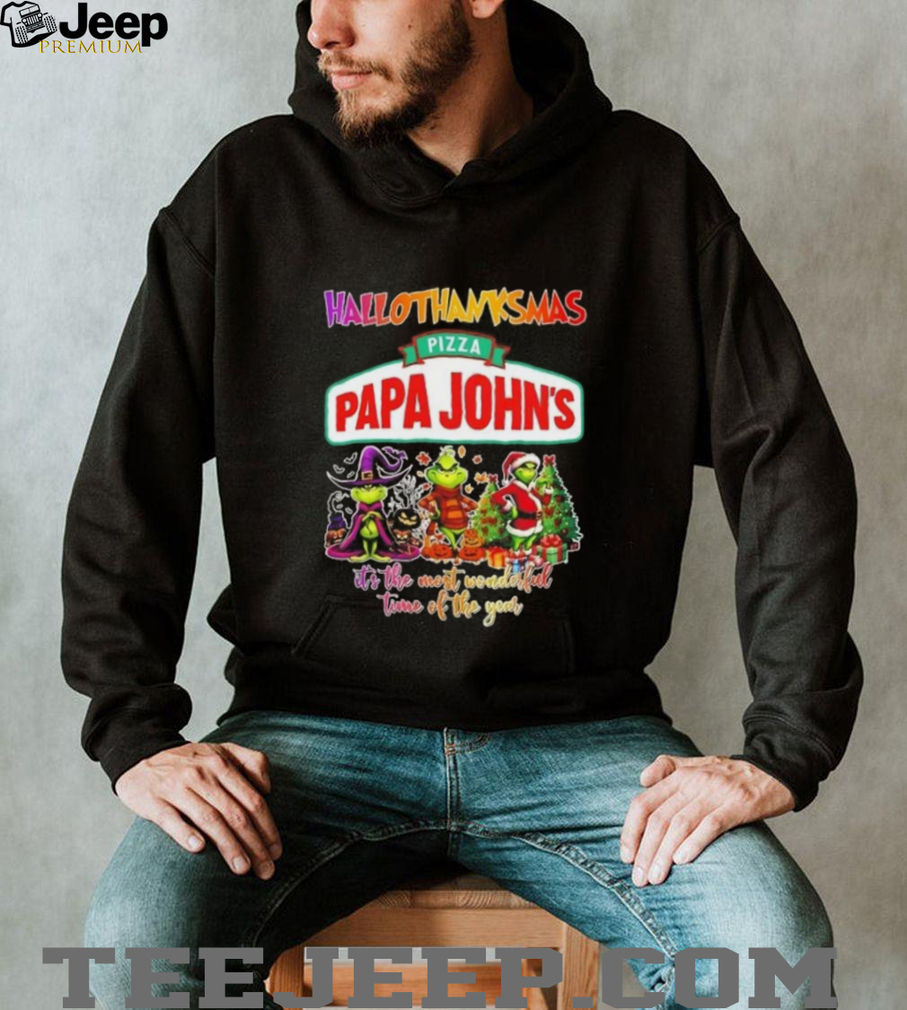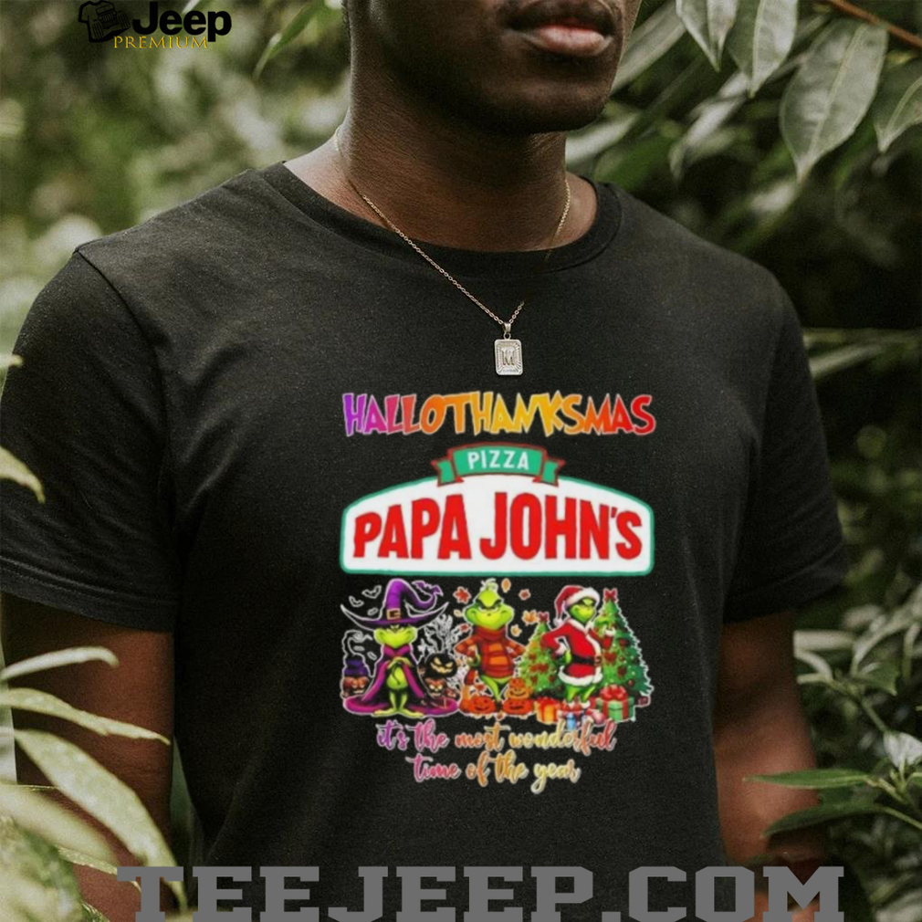👕 About Grinch x Papa John’s Pizza happy HalloThanksMas it’s the most wonderful time of the year shirt
