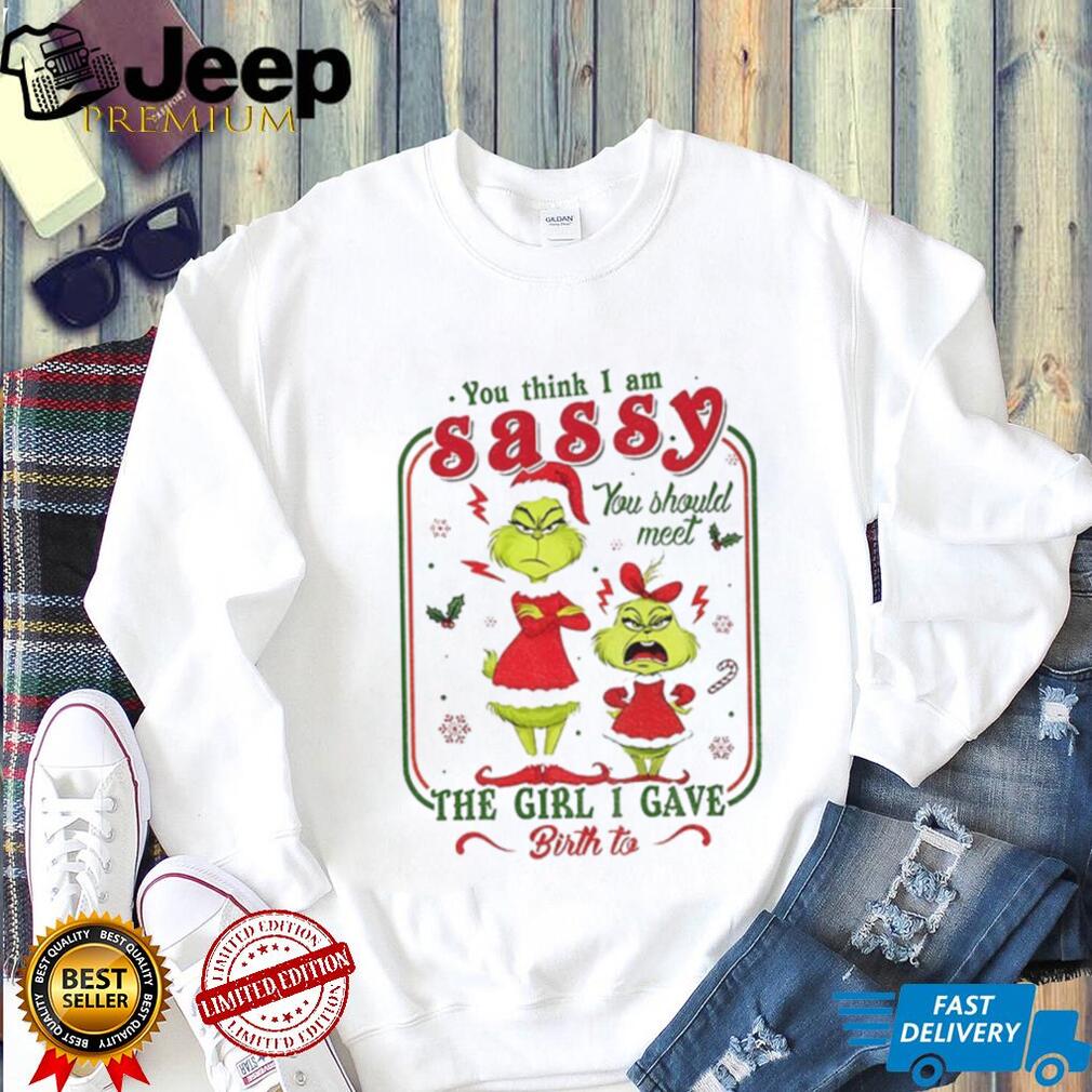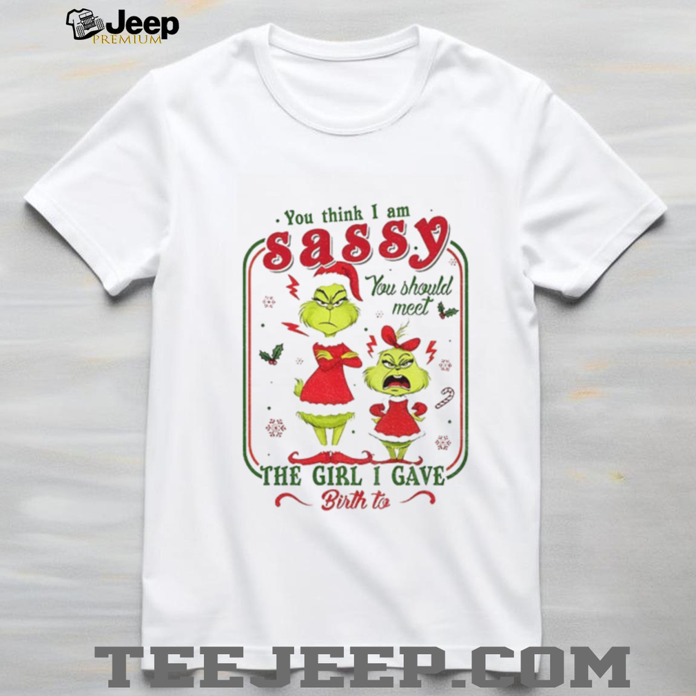 What Makes This Grinch you think I am sassy you should meet the girl I gave birth to Merry Christmas shirt Epic