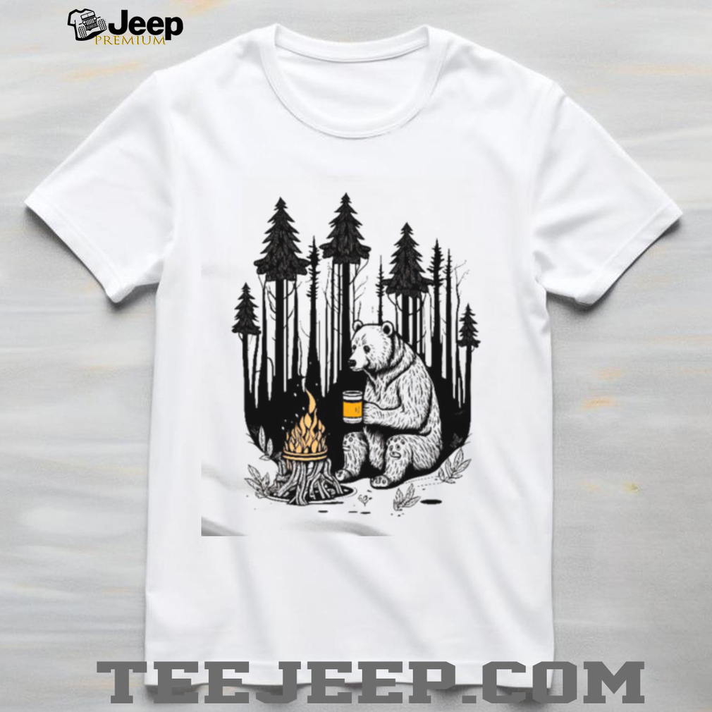 ()Grizzly Bear Drinking Coffee by the Campfire Forest T Shirt, Treat yourself or make a great gift for your loved ones