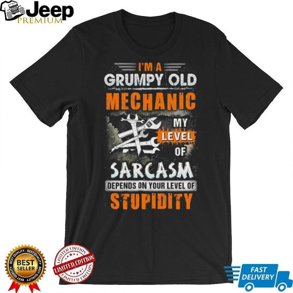 Grumpy Old Mechanic Sarcasm Level Stupidity Funny Work T Shirt, Treat yourself or make a great gift for your loved ones