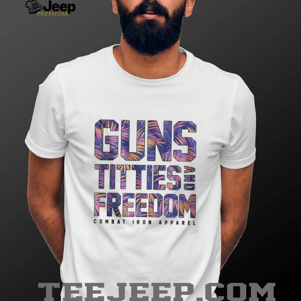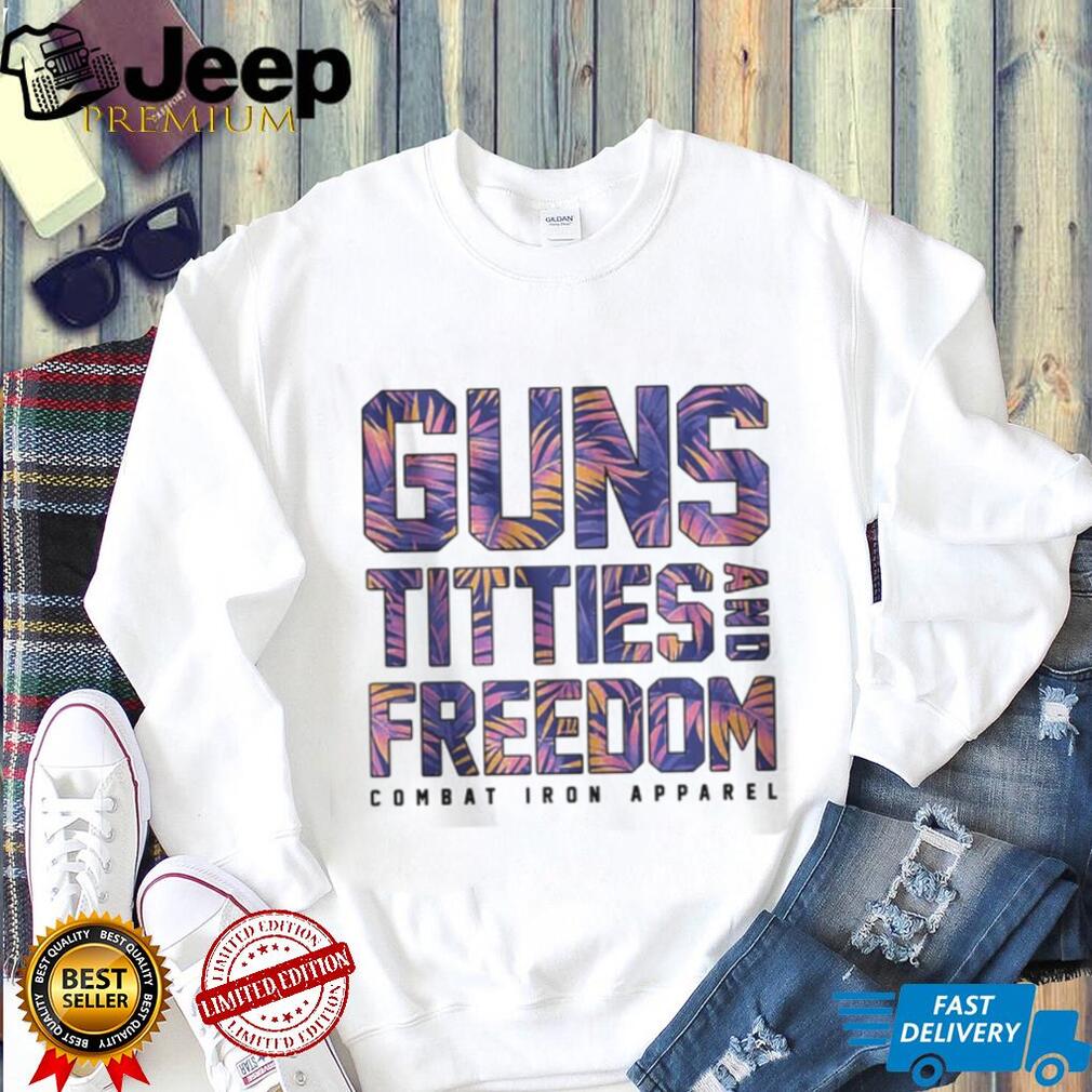 ()Guns Titties and Freedom Floral Tropical Print Patriotic Shirt, Treat yourself or make a great gift for your loved ones