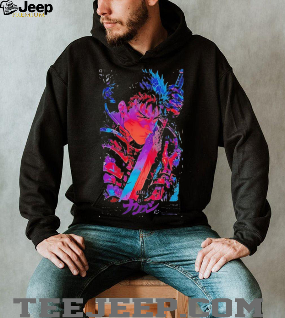 ()Guts Berserk Anime Neon Aesthetic Graphic Print Black T Shirt, Treat yourself or make a great gift for your loved ones