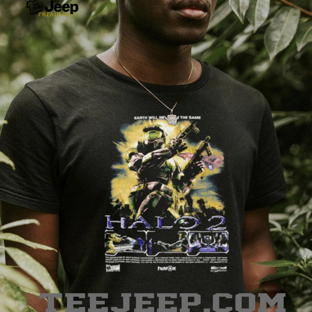 (Halo 2 Master Chief “Earth Will Never Be The Same” Gamer T Shirt)Halo 2 Master Chief “Earth Will Never Be The Same” Gamer T Shirt, Treat yourself or make a great gift for your loved ones