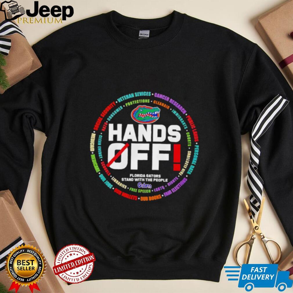 Don’t miss the chance to sport a shirt that goes beyond the scoreboard. The “Hands Off Florida Gators Stand With The People” tee is a unique way to blend your passion for the Gators with your commitment to standing with the community. It’s a fantastic gift for the thoughtful Gator fan in your life, or for anyone who believes that team spirit can extend beyond the playing field. Grab this shirt, wear it with pride, and let your Gator pride roar for something bigger!