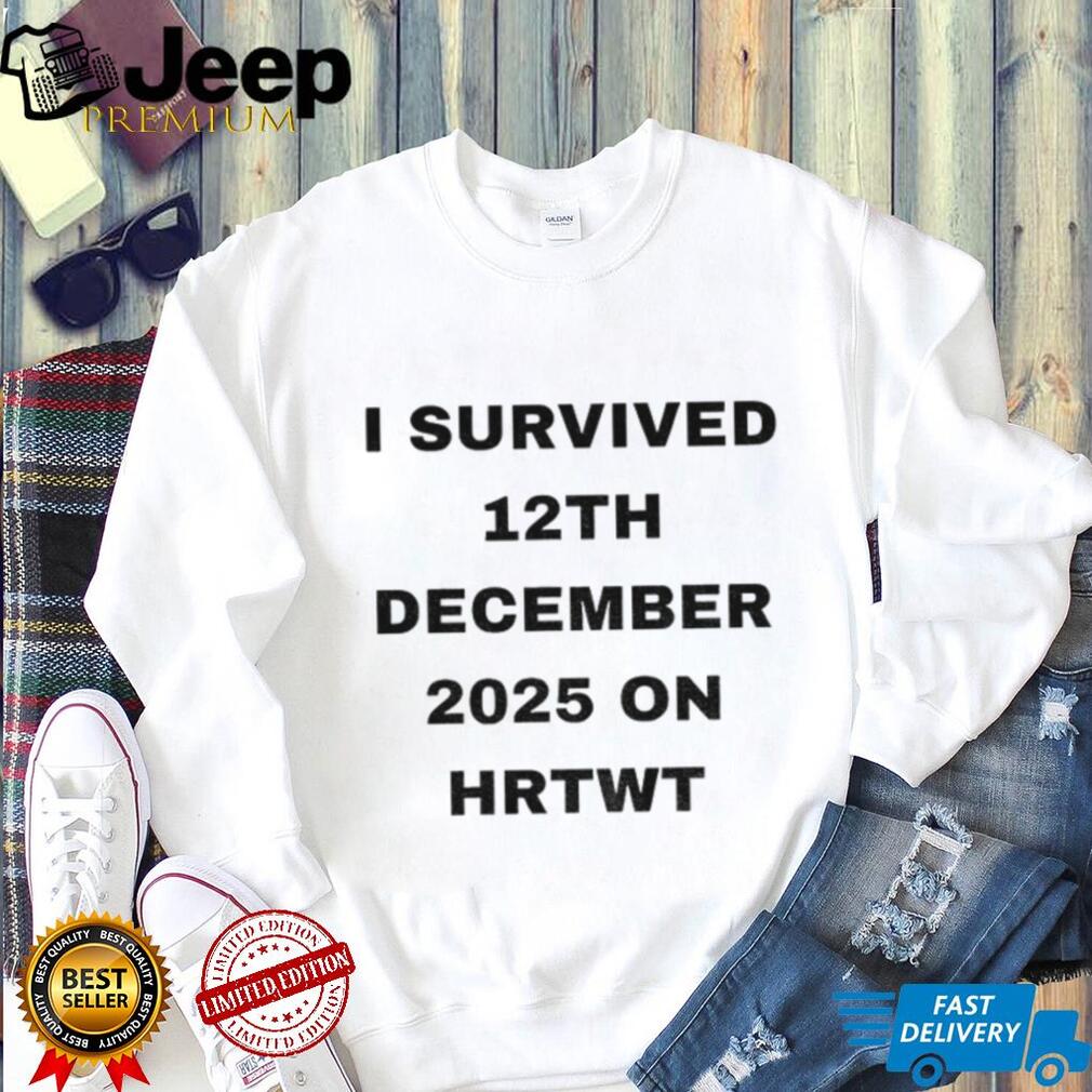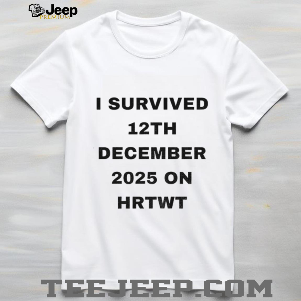 Celebrate your survival of the legendary December 12, 2026, HRTWT event with this uniquely designed t-shirt. It’s more than just a shirt; it’s a testament to experiencing a moment that became internet folklore. Crafted for comfort, this tee is made from a soft, breathable fabric, perfect for everyday wear. The print is durable, ensuring your survival status remains clear through countless washes. Available in various sizes, it’s designed for a great fit, whether you’re reliving the memories or explaining the significance to newcomers.