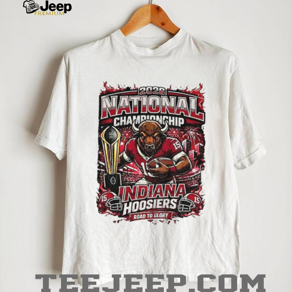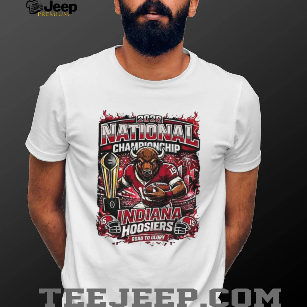 (Hoosier the Bison Indiana Hoosiers Football 2026 National Championship Road to Glory shirt)Soccer is played under the same rules by perhaps hundreds of millions of people around the world. American football is played to its fullest rules by a tiny fraction of that number. I strongly doubt the NFL will ever attain the international world-wide status of soccer or basketball (not the NBA) because American football is a uniquely American sport that isn’t played by people outside North America. English style Soccer (Association Football) rules the international sports field. American style football is expensive! Everything from the cost of the stadiums, Hoosier the Bison Indiana Hoosiers Football 2026 National Championship Road to Glory shirt, personal equipment, huge staff & coaching dept plus the players gigantic salaries will almost certainly make the American Football game out of the reach. Canada is the only other nation that I know of that has a football league like America.