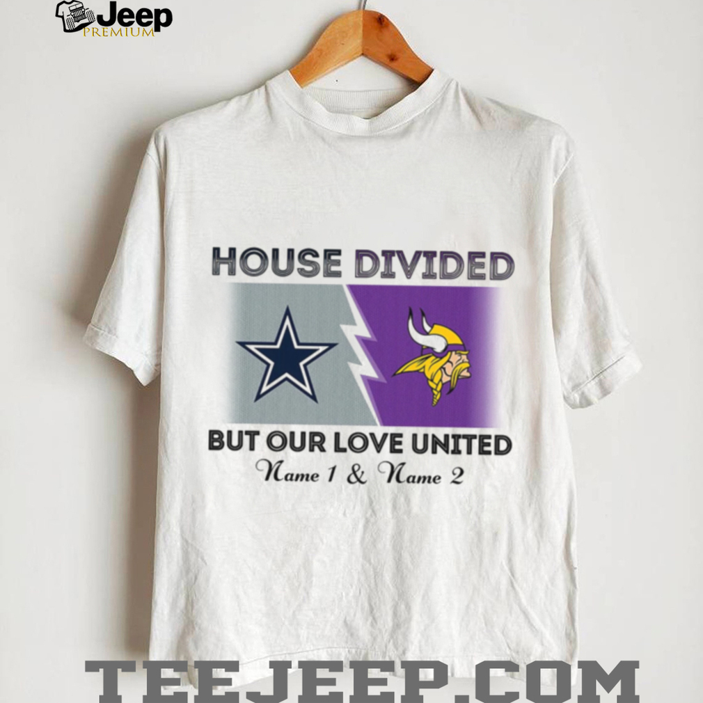 This House Divided, Love United Cowboys & Vikings shirt is ideal for couples, families, or friends who find themselves rooting for opposing teams but share an unbreakable bond. It makes a fantastic gift for anniversaries, birthdays, or just to celebrate the unique harmony in your sports-loving household. Wear it to game day parties, family gatherings, or casual outings to proudly display your balanced loyalties. It’s a wonderful way to acknowledge both your individual team passions and your collective affection.
