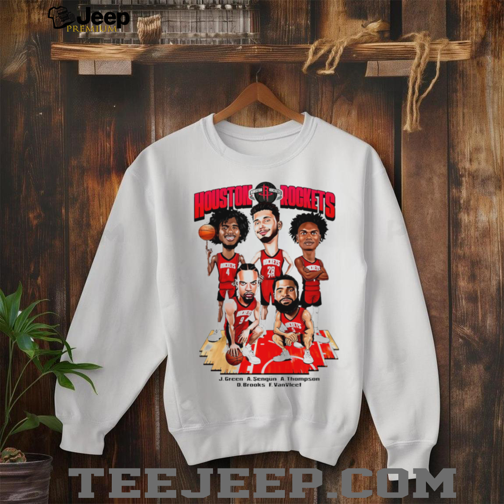 Don’t let this hilarious opportunity dribble away! The “Houston Rockets J. Green A. Sengun A. Thompson D. Brooks F. VanVleet Funny Cartoons” shirt is the perfect way to show your love for the Rockets’ exciting lineup with a unique and lighthearted twist. It’s a fantastic gift for the Rockets fanatic with a great sense of humor, the NBA lover who appreciates a good chuckle, or anyone who enjoys seeing the lighter side of their favorite team. Grab this funny fan favorite today and get ready to bring some cartoonish cheer to the Toyota Center (or just your everyday life)!