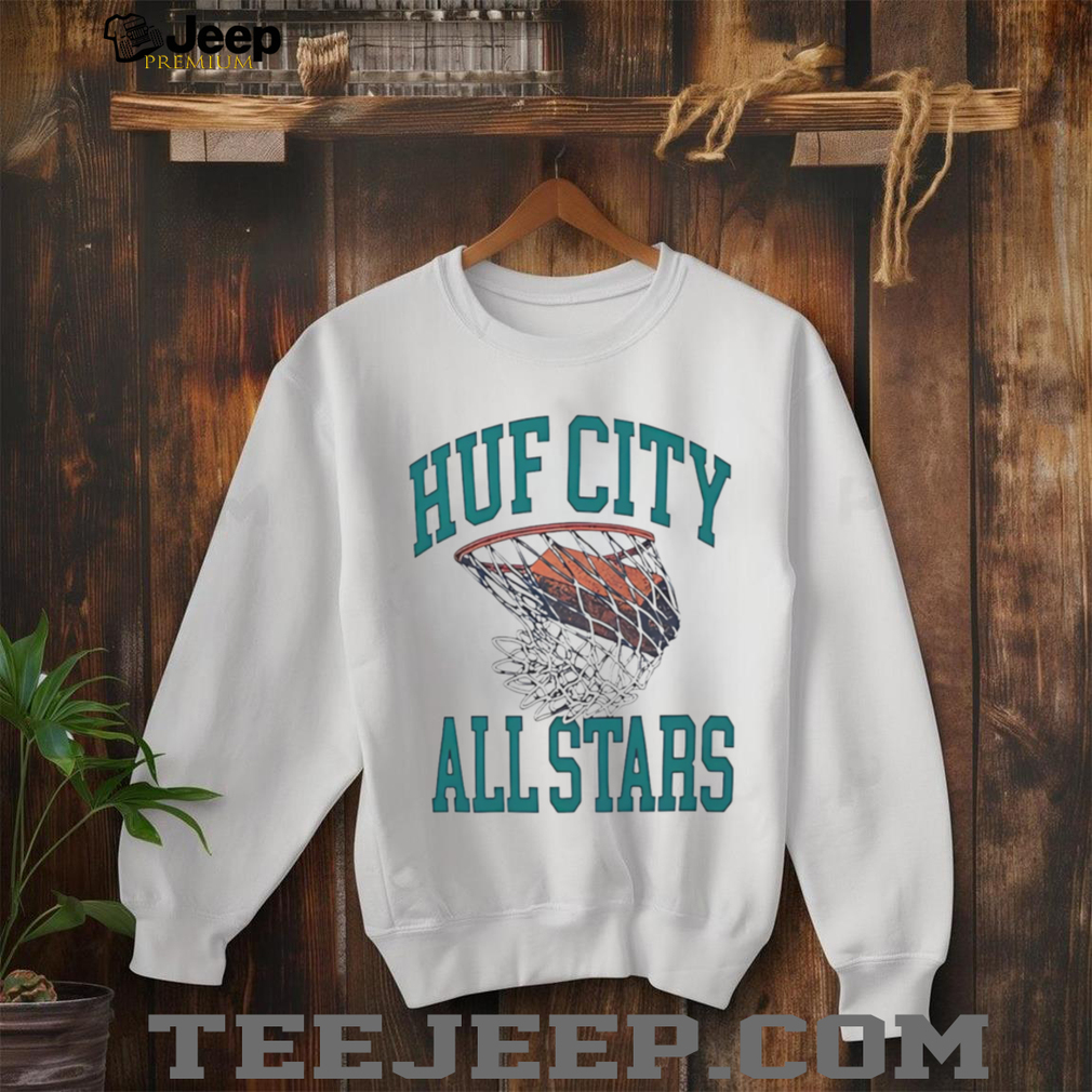 This shirt represents more than just a piece of sports apparel; it signifies a connection to a specific local basketball community and the urban culture often associated with the HUF brand. Wearing this shirt allows individuals to show their support for the “Huf City All Stars” and to identify with a particul