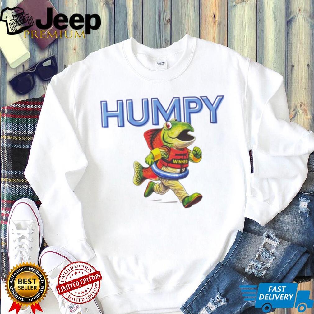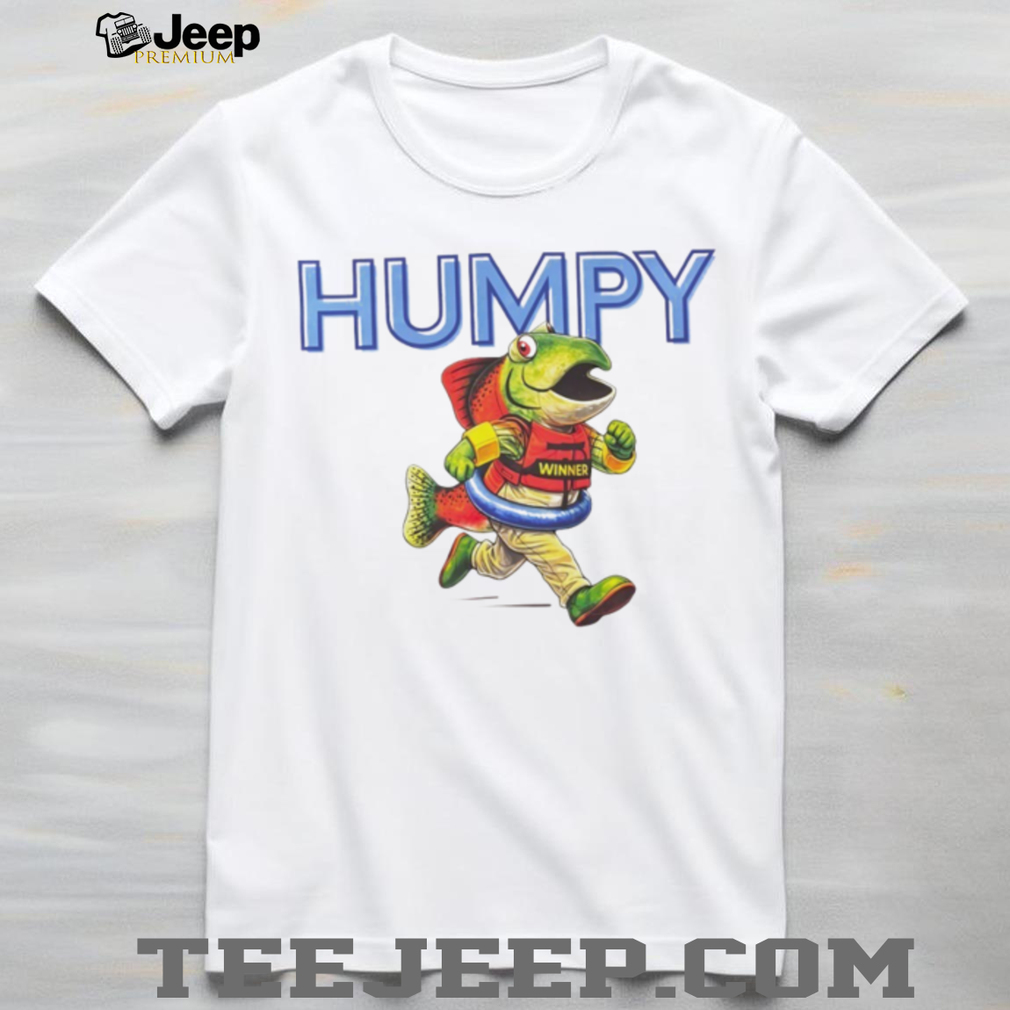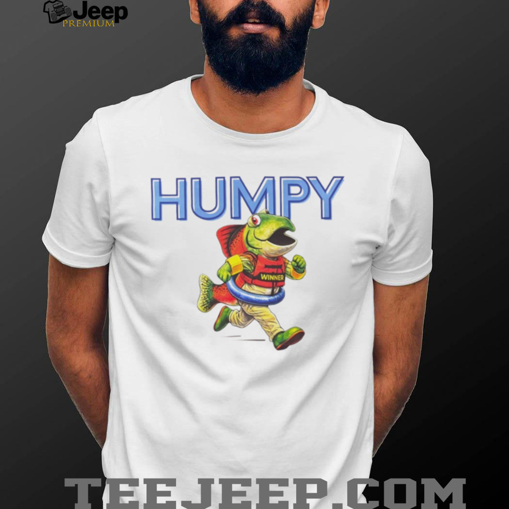 (Humpy The Winner Cartoon Running Salmon Mascot T Shirt)Apr 21