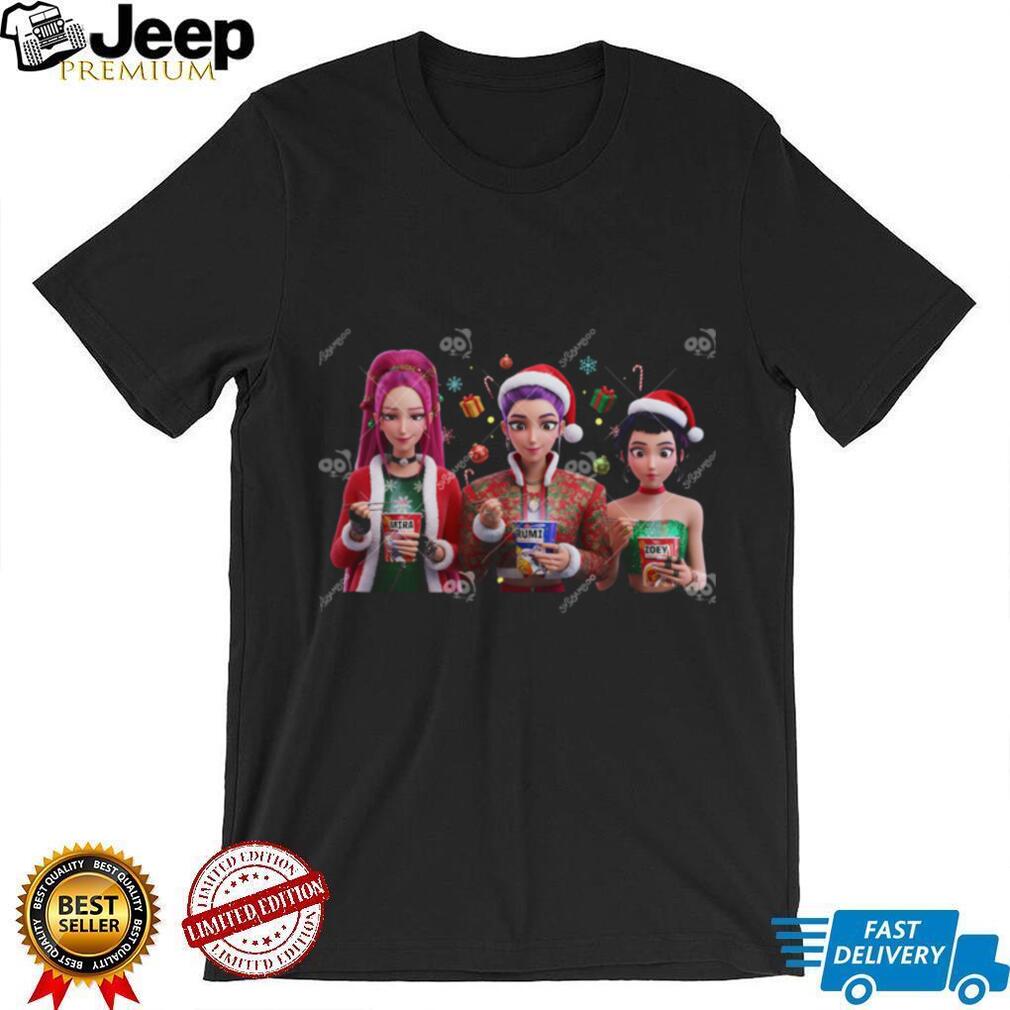 Get ready to slay the holidays with this Huntrix Christmas Ramyeon Shirt! This Xmas Kpop Demon Hunters design is perfect for those who love unique, quirky, and festive apparel. Combine your love for Kpop, anime, and delicious ramyeon with this eye-catching Christmas shirt.