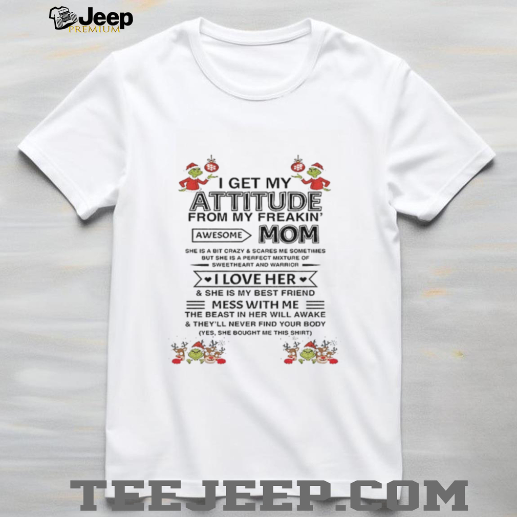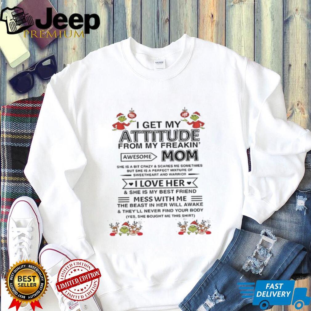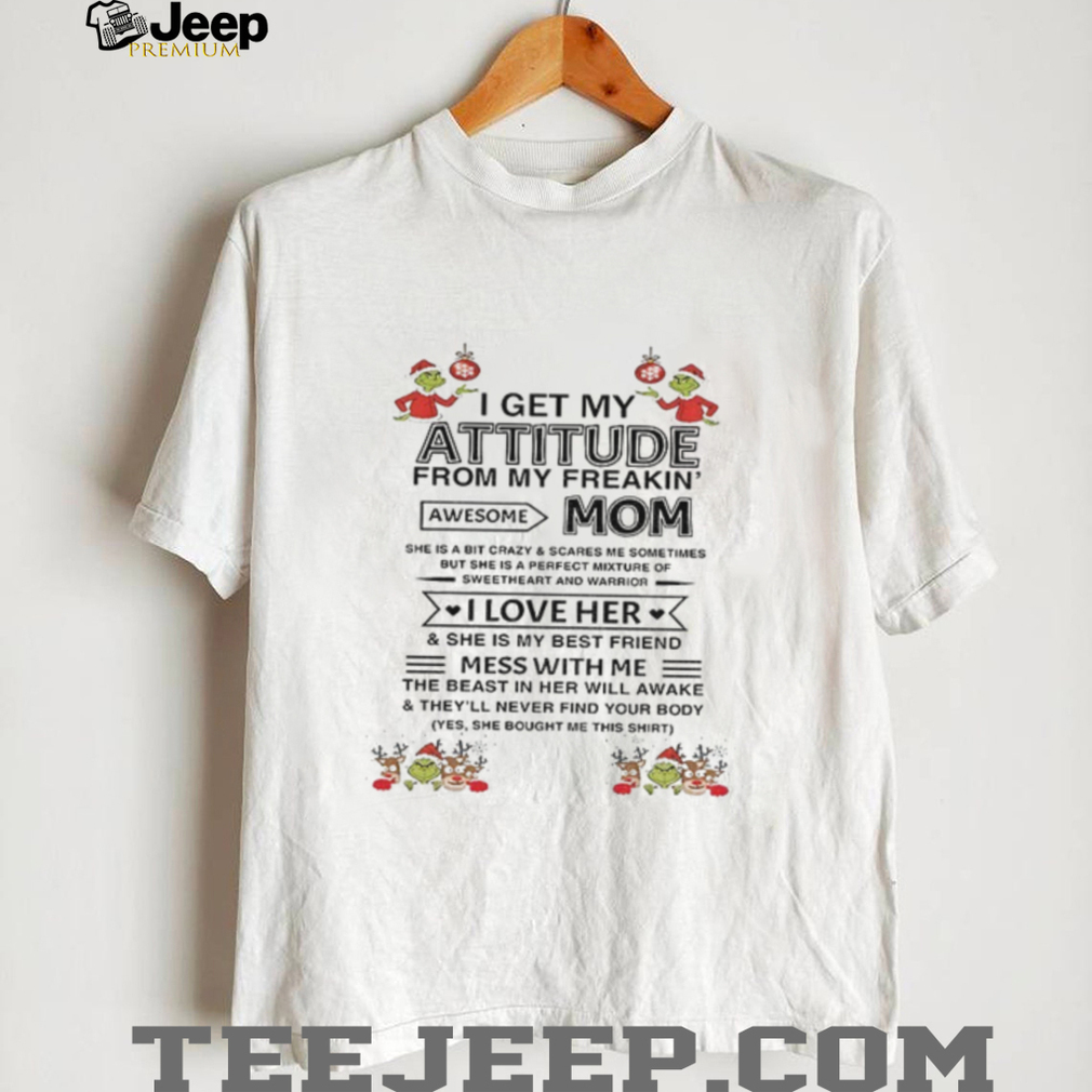 What Makes This I get my attitude from my freakin’ awesome mom she is a bit crazy and scares me sometimes Christmas shirt Epic