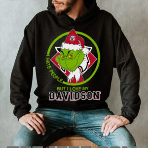 Who Rocks This Best with I Hate People But I Love My Davidson Wildcats Grinch With Santa Hat Football Christmas Gift Shirt?