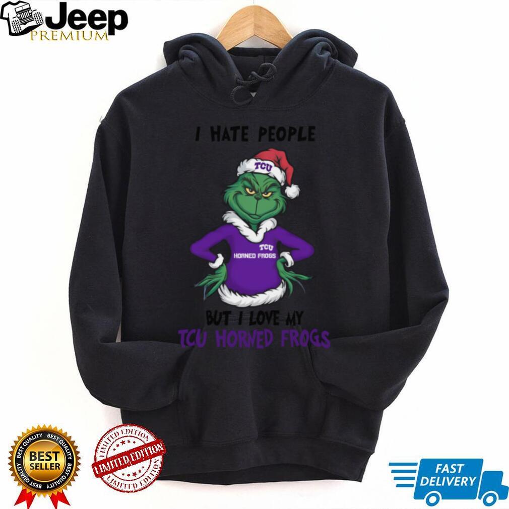 Who Rocks This I Hate People But I Love My TCU Horned Frogs Grinch Merry Christmas Shirt Best?