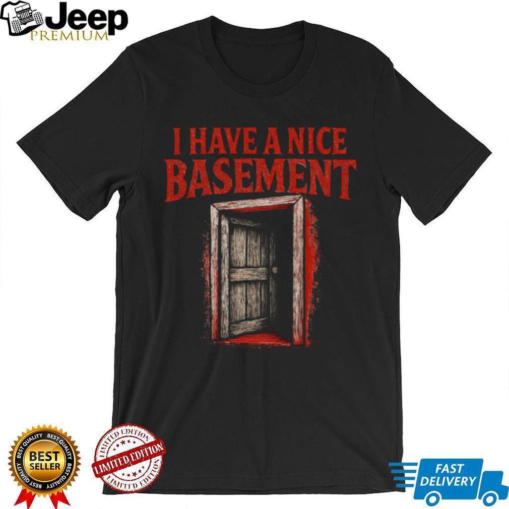 ()I Have A Nice Basement Creepy Horror Door Graphic Tee, Treat yourself or make a great gift for your loved ones