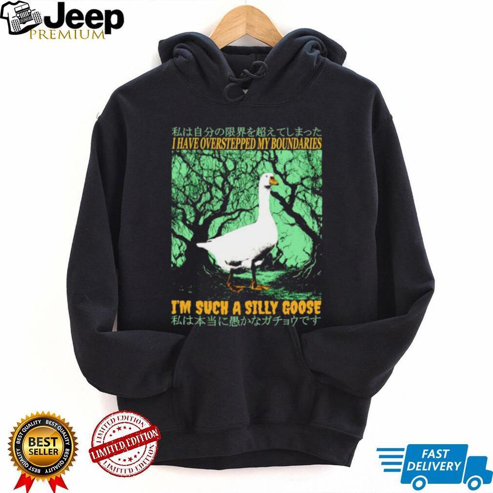 The “I have overstepped my boundaries I’m such a silly goose Japanese shirt” is a truly unique and self-aware piece of apparel that combines humorous self-deprecation with a subtle nod to Japanese aesthetic or cultural influence. This shirt perfectly captures that relatable moment when you realize you’ve gone a bit too far, acknowledging it with lighthearted humor rather than serious regret. The phrase “silly goose” adds an endearing, almost innocent, touch to the admission of “overstepping boundaries,” creating a quirky and memorable statement. This piece is ideal for those who don’t take themselves too seriously and appreciate a playful approach to life’s awkward moments, possibly featuring the phrase in Japanese script or with illustrative elements.