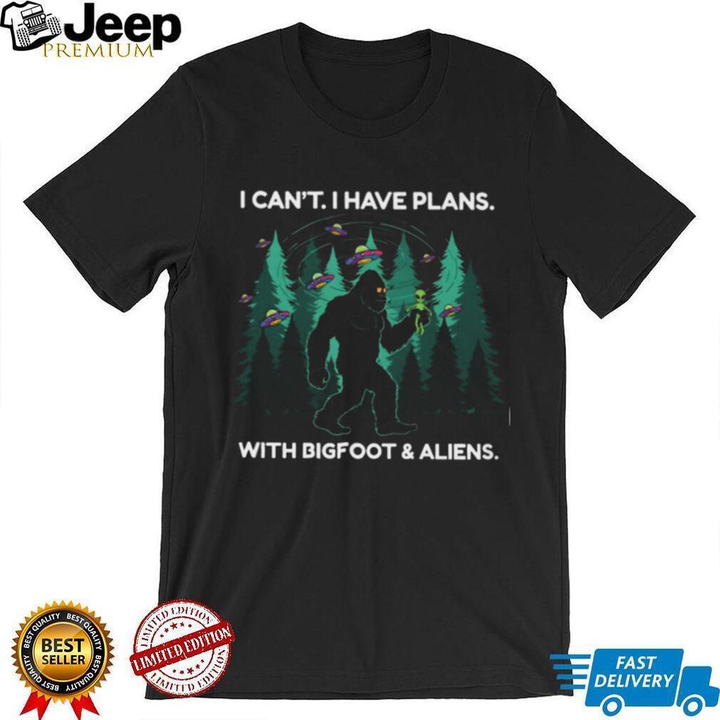 “I Have Plans With Bigfoot & Aliens” T Shirt Funny Sci Fi Sasquatch Tee, Treat yourself or make a great gift for your loved ones