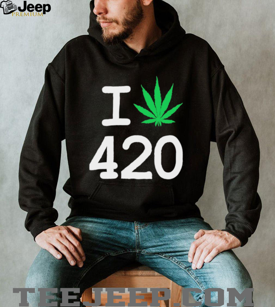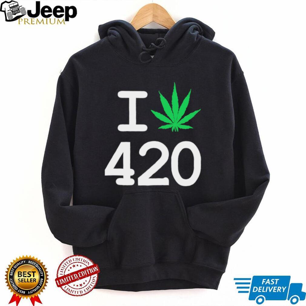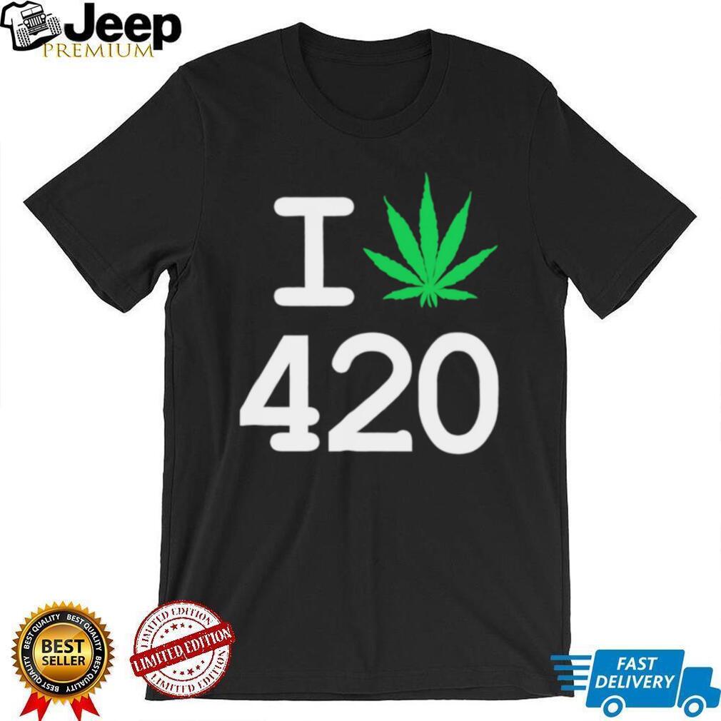 (I Love 420 Marijuana Leaf Graphic T Shirt Minimalist Cannabis Pot T Shirt)