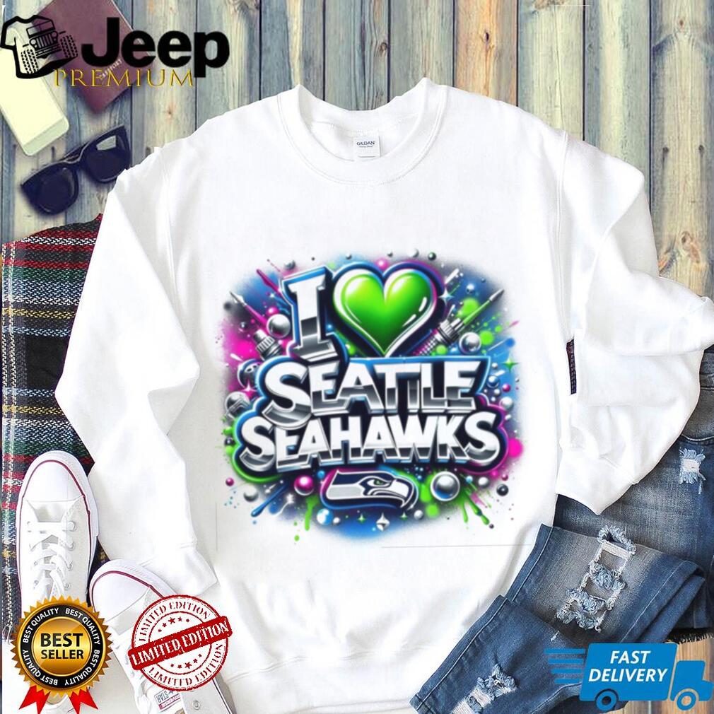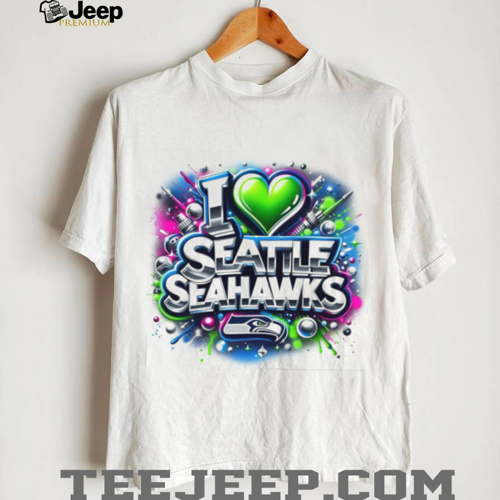 (I Love Seattle Seahawks Airbrush Graffiti Style NFL Fan T Shirt)I Love Seattle Seahawks Airbrush Graffiti Style NFL Fan T Shirt, Treat yourself or make a great gift for your loved ones