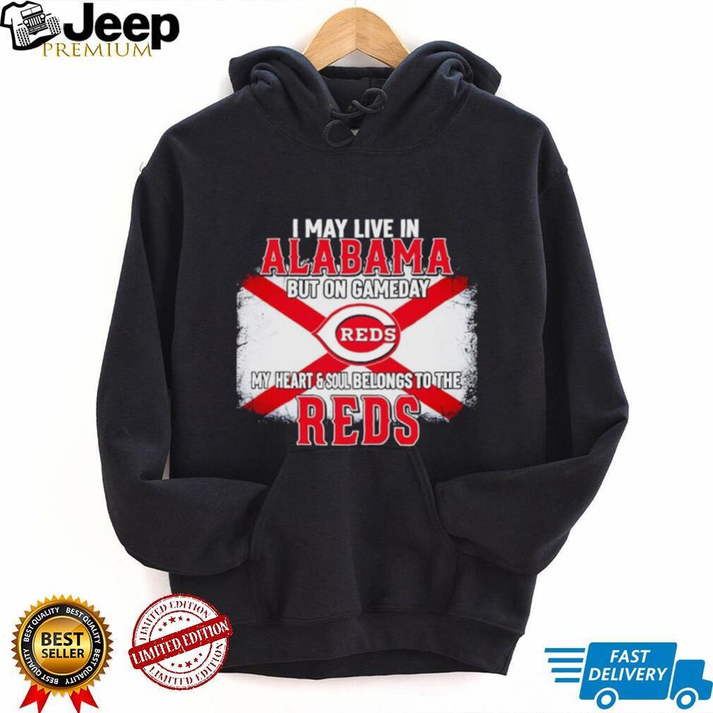 For fans in “Alabama” whose “Heart & Soul Belongs To Cincinnati Reds,” “gameday” is a special ritual, often involving more than just watching the game. It can mean tuning into radio broadcasts, streaming games online, or finding fellow Reds enthusiasts in their local community to share the experience. The act of wearing a “T-shirt” like this one becomes a visible declaration of their unique attribute of loyalty, a viral trigger that sparks conversations and connections with other fans, regardless of location. The phrase “I May Live In Alabama” acknowledges their current residence while emphasizing that their true allegiance lies elsewhere. This emotional appeal speaks to the power of sports to create a sense of belonging that transcends geography. Here’s the part they didn’t tell you: for these distant fans, the simple act of putting on this shirt transforms their living room into a section of Great American Ball Park, making them feel intrinsically connected to every pitch and every play, no matter how far away they are.